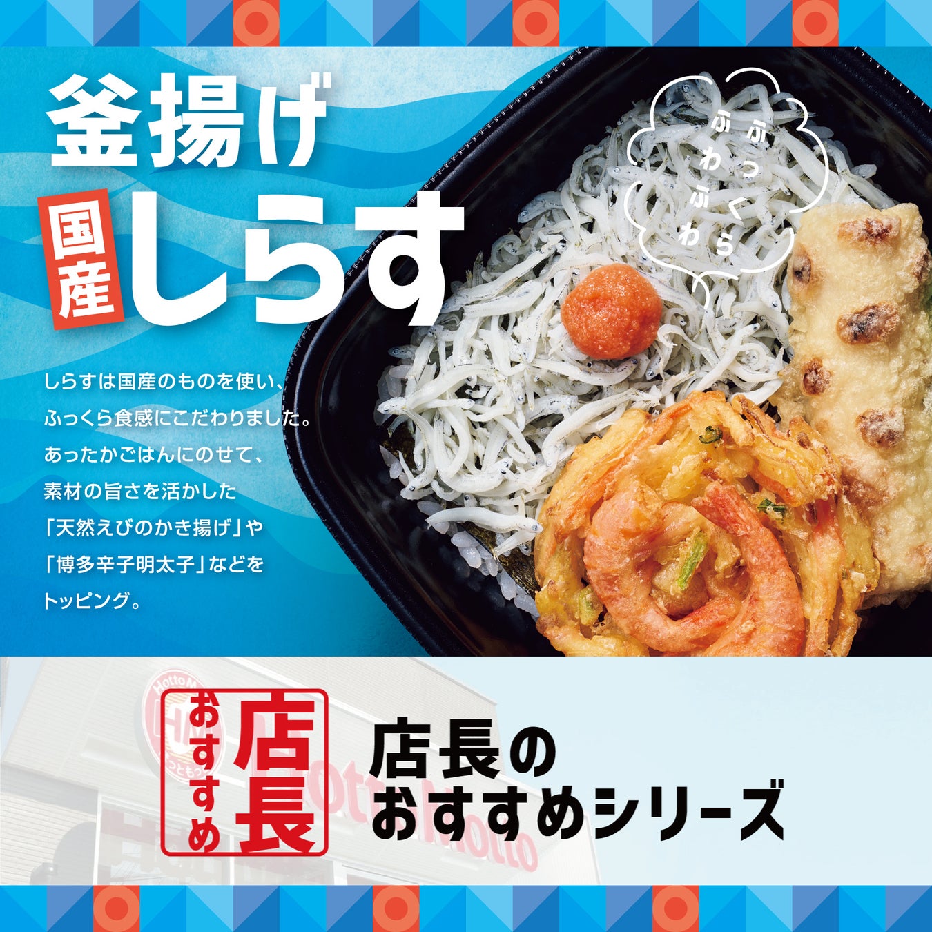 「ほっともっと」全国の店長が選んだ、『釜揚げしらす弁当』おすすめポイント!1位『かき揚げやちくわ天入りで食べ応えがある』