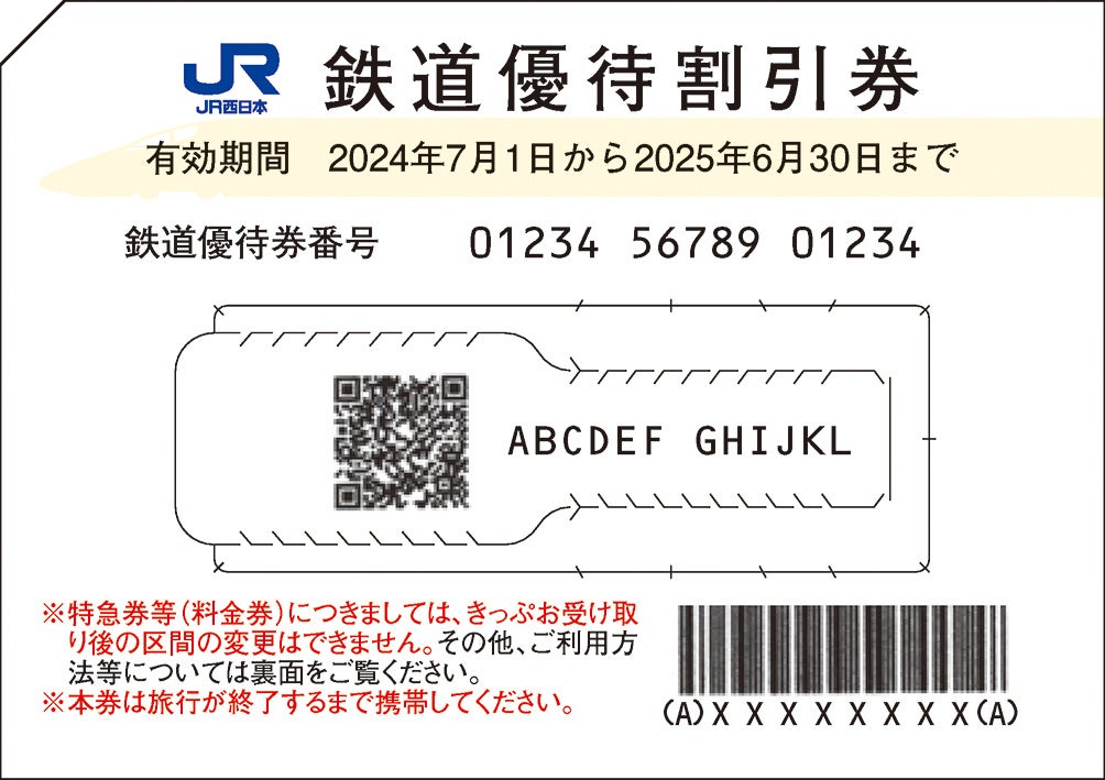 特典②JR西日本エリア内のきっぷ(片道お一人様の運賃・料金)が5割引となる「鉄道優待割引券」1枚
