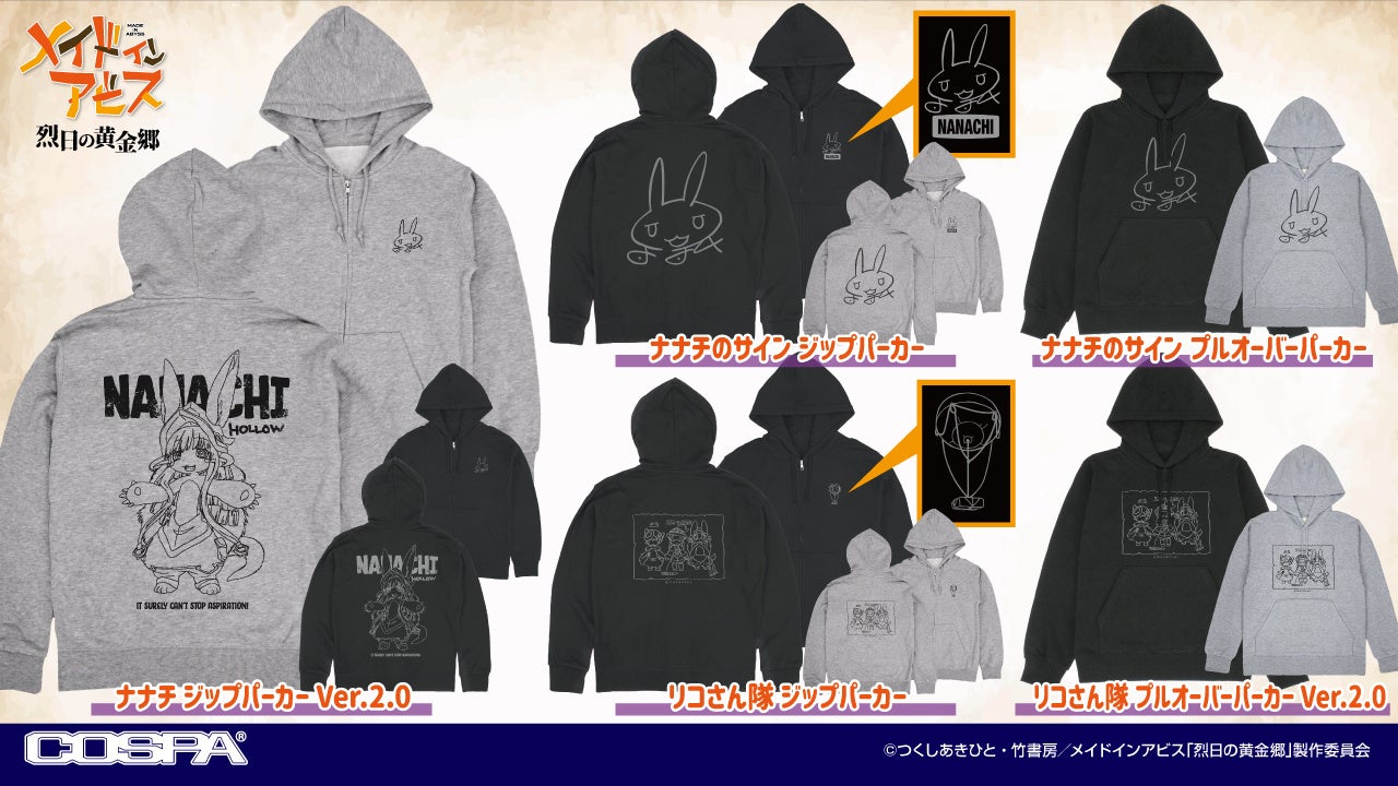 『メイドインアビス 烈日の黄金郷』リコさん隊とナナチのサインのデザインパーカーが予約開始!【株式会社コスパ】