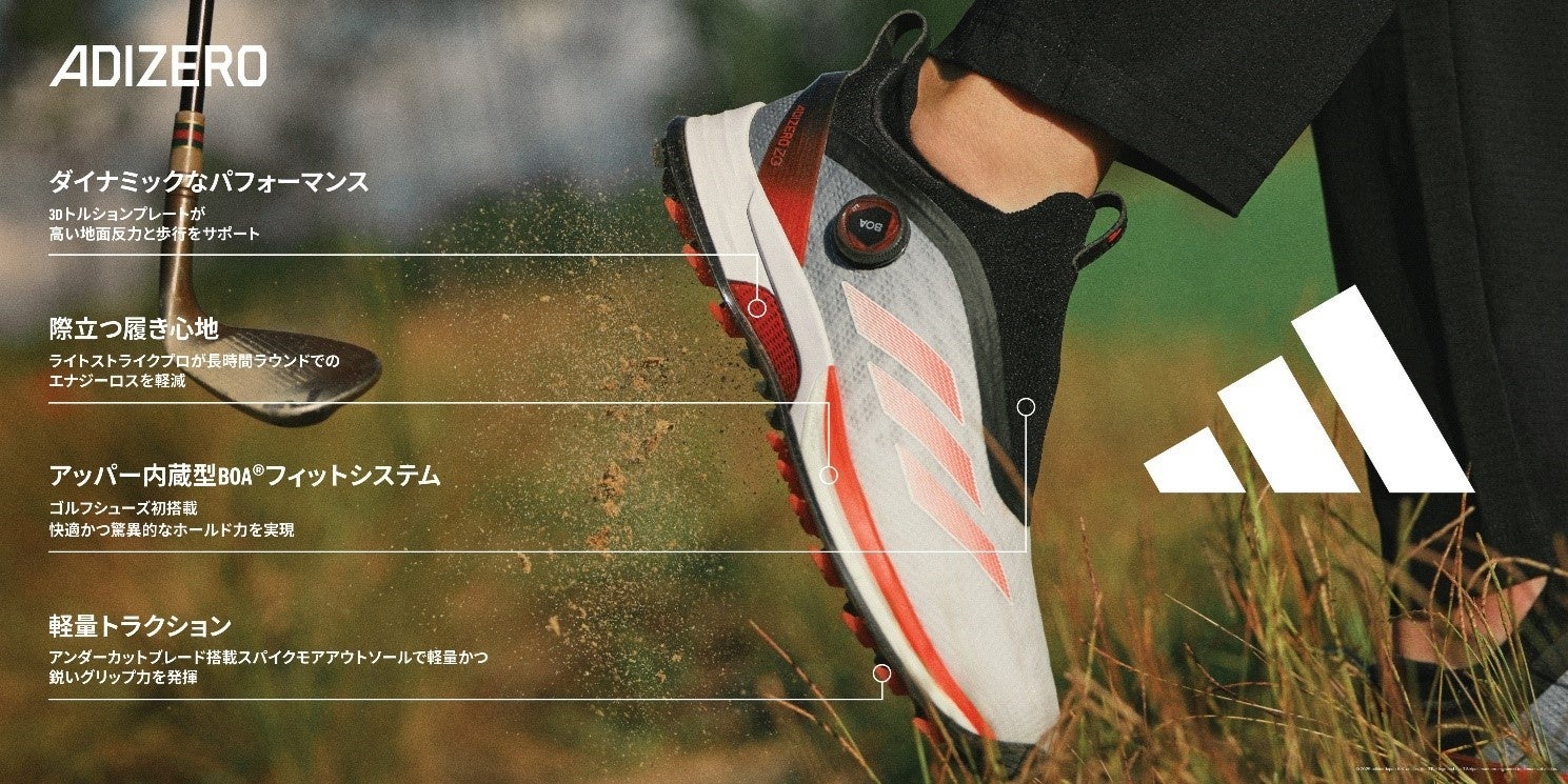 最後の一打まで自信を持って全力で挑めるゴルフシューズゴルファーのニーズを満たす軽量ギア「Adizero ZG 25」2/14発売