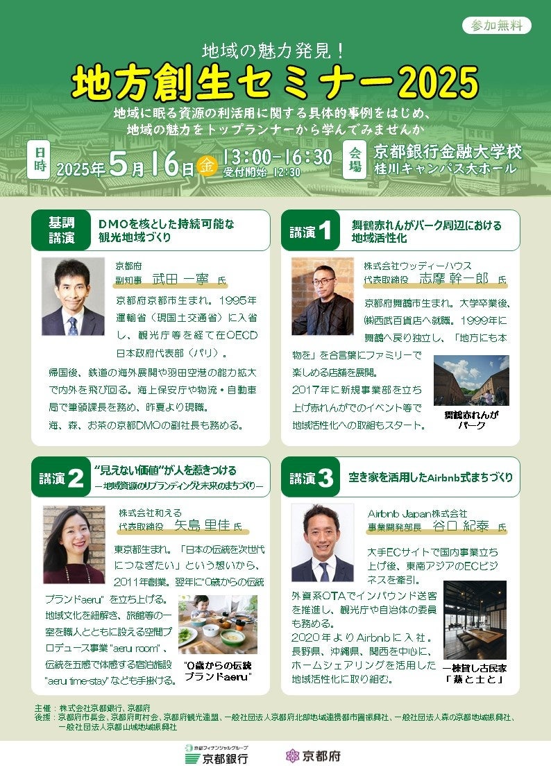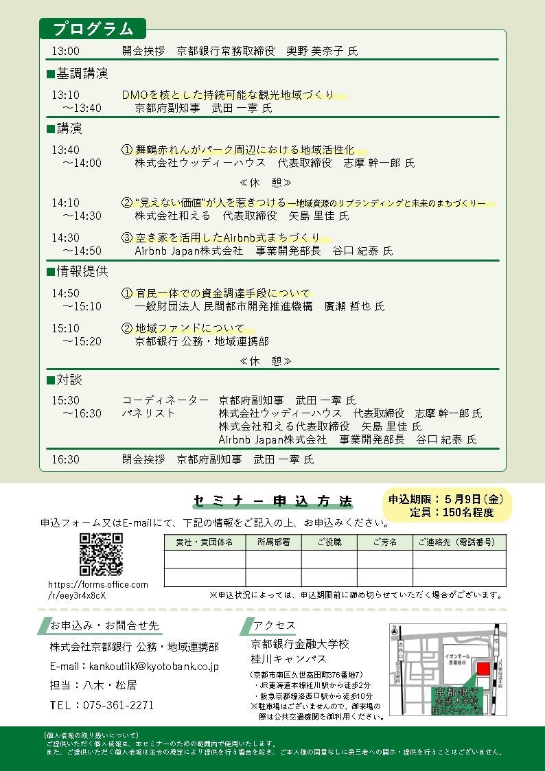 5月9日(金)までに京都銀行公務・地域連携部まで申し込み (参加料無料、先着 150 名程度)