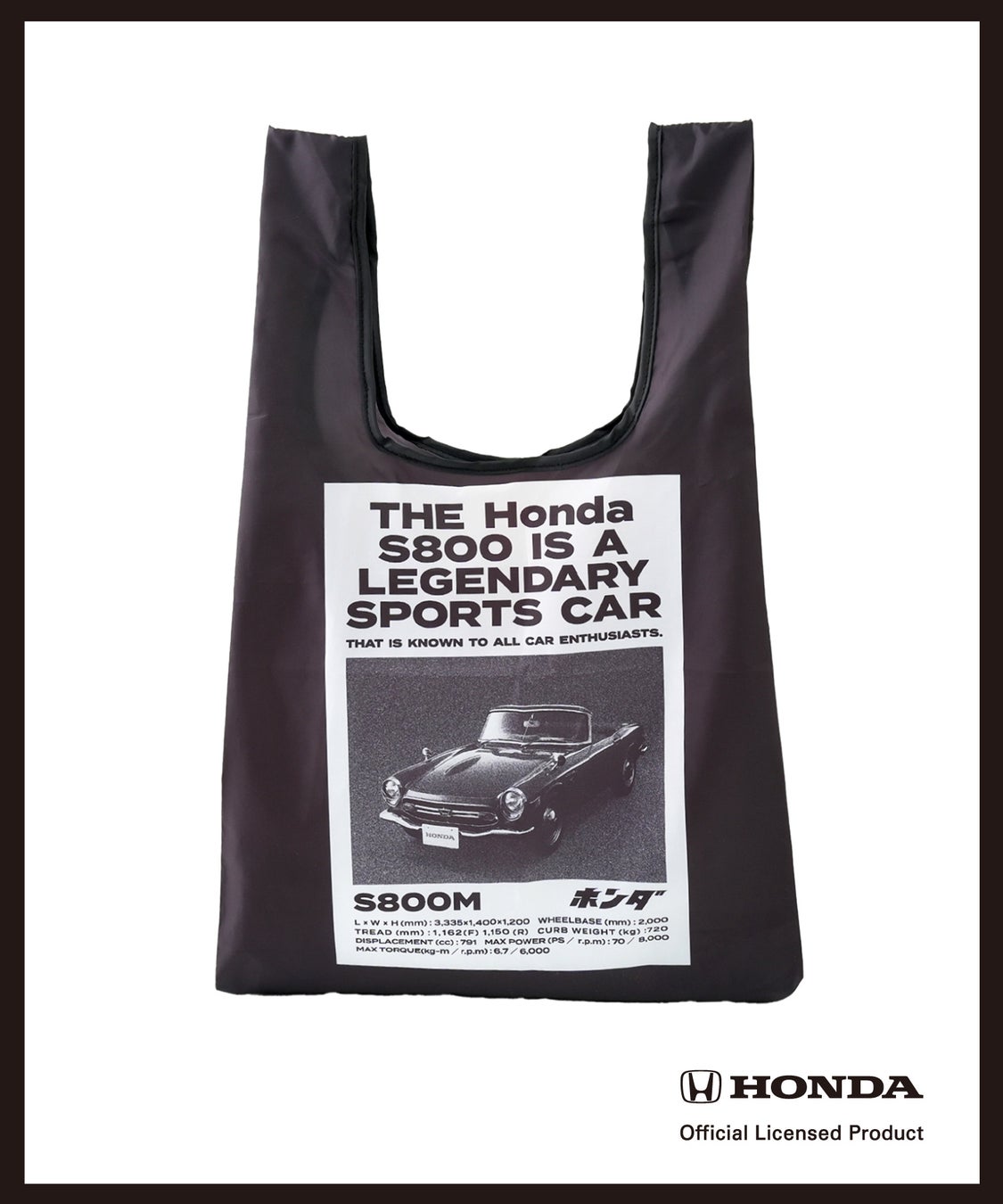 キャップやキーホルダー、名車と言われたスポーツカー、S800や当時の軽自動車の常識を覆す広さとパワーでベストセラーカーとなったN360のイラストを用いたTシャツやエコバッグなど、手にした