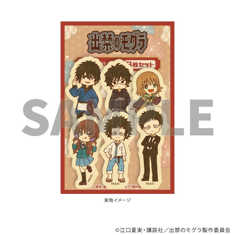 およそ4cm×4cmのシールが6枚セットになったフレークシール。手帳やタブレットに貼れば、身の回りの持ち物が『出禁のモグラ』グッズに早変わりします!