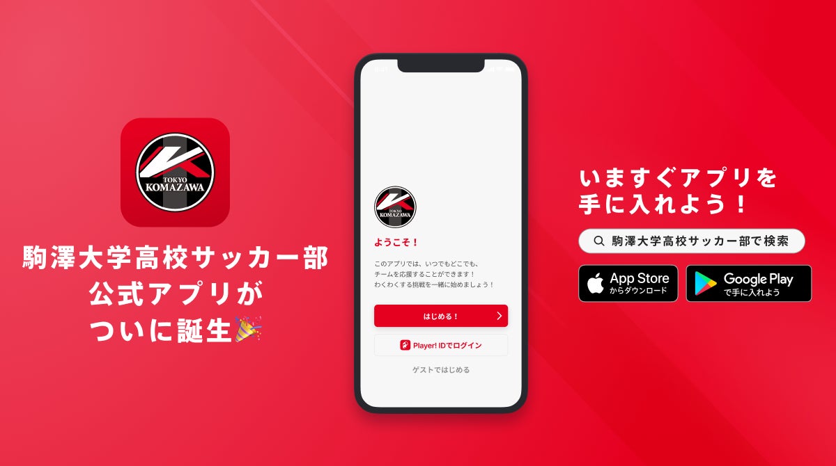 AppStoreもしくはGooglePlayで「駒澤大学高校サッカー部」と検索!