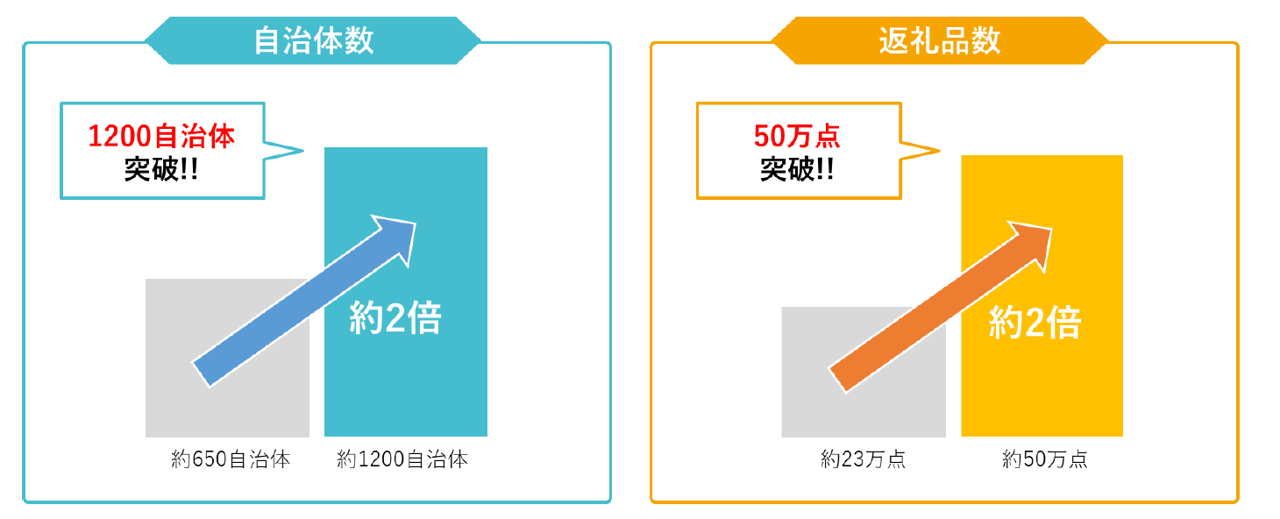 1,200以上の自治体が掲載され、約50万点の返礼品を取り扱っています(2024年11月5日現在)。