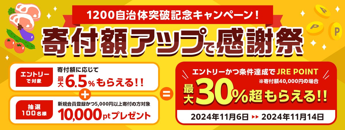 「1200自治体突破記念キャンペーン ~寄付額アップで感謝祭~」