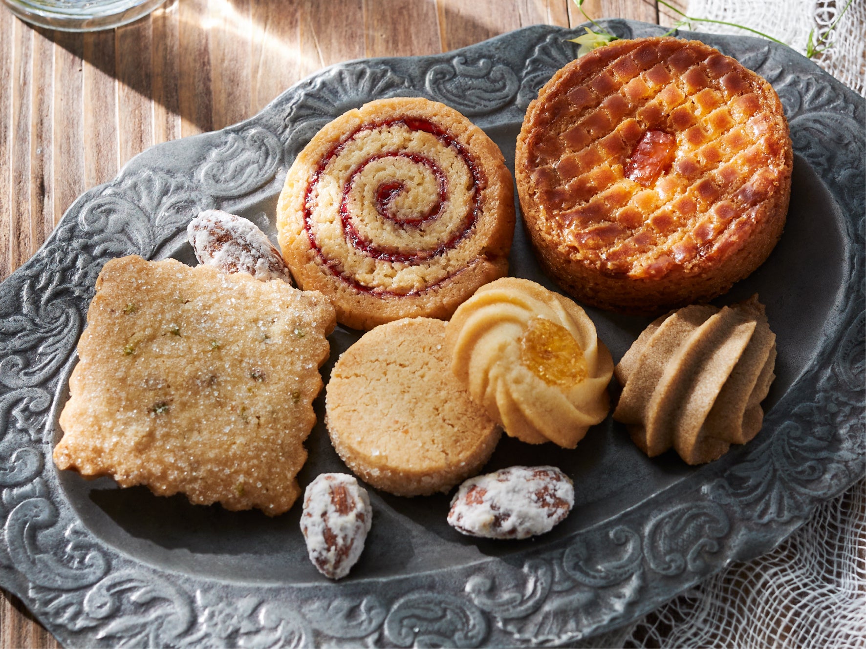 毎年ご好評いただいている夏の“シトロン缶”が、今年は限定の「トワルドジュイ柄」のデザインで登場します。淡いシトロンカラーに白色でトワルドジュイ柄をあしらったクラシカルで繊細なデザインの缶に、発酵バターの風味とオレンジの爽やかな香りが広がるオレンジピール入りのガレット・ブルトンヌや、レモンが爽やかに香るバニラクッキーに上品なピスタチオを合わせた新作の〈シトロン・ピスターシュ〉、レモンのコンフィチュールをしぼった〈シトロン〉、アールグレイが香る繊細なサブレ〈コキーユ・オ・テ〉、オレンジの香りに粗糖でコクを引き出した〈サブレ・オランジェ〉、定番人気の〈フランボワーズ〉の6種のクッキーと、糖衣がけしたアーモンドのプラリーヌを合わせた7つの香り高い美味しさを詰めています。通常のクッキー缶では味わえない限定のクッキーが盛りだくさんの贅沢な詰め合わせです。夏のティータイムに、アイスティーなど紅茶とご一緒にお楽しみください。