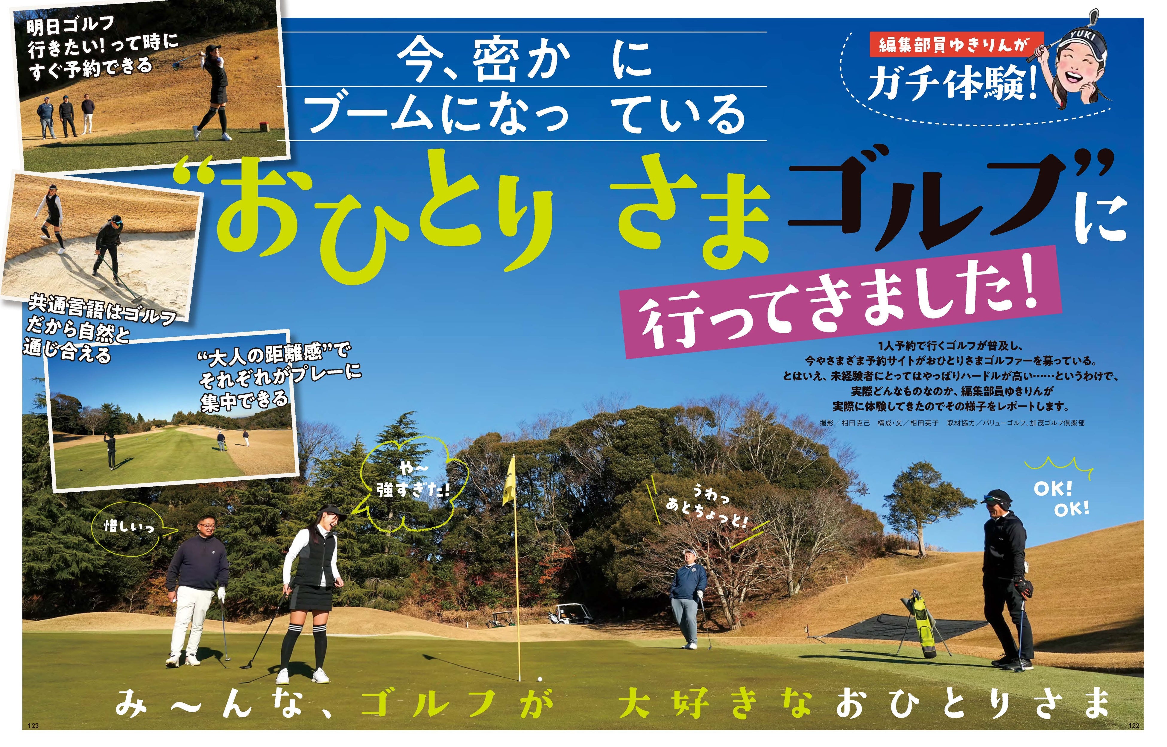 スペシャル企画としては、密かにブームになっている「おひとりさまゴルフ」編集部員のゆきりんがガチで体験してレポート。