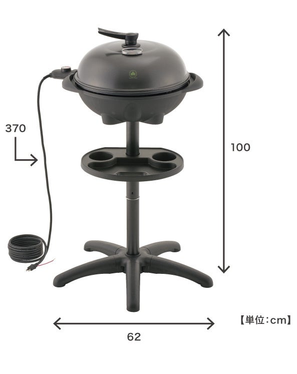 本アイテムは、コンセントにつないでスイッチ1つで手軽にBBQができる電気式グリルです。炭火ではないため煙が少なく安心してお使いいただけ、ベランダなどの屋外はもちろん、屋内でもお使いいただけます。電気代は1時間当たり約33.8円と、木炭を燃料とするBBQグリルやガスボンベ式調理器具より低コストで調理できます。
