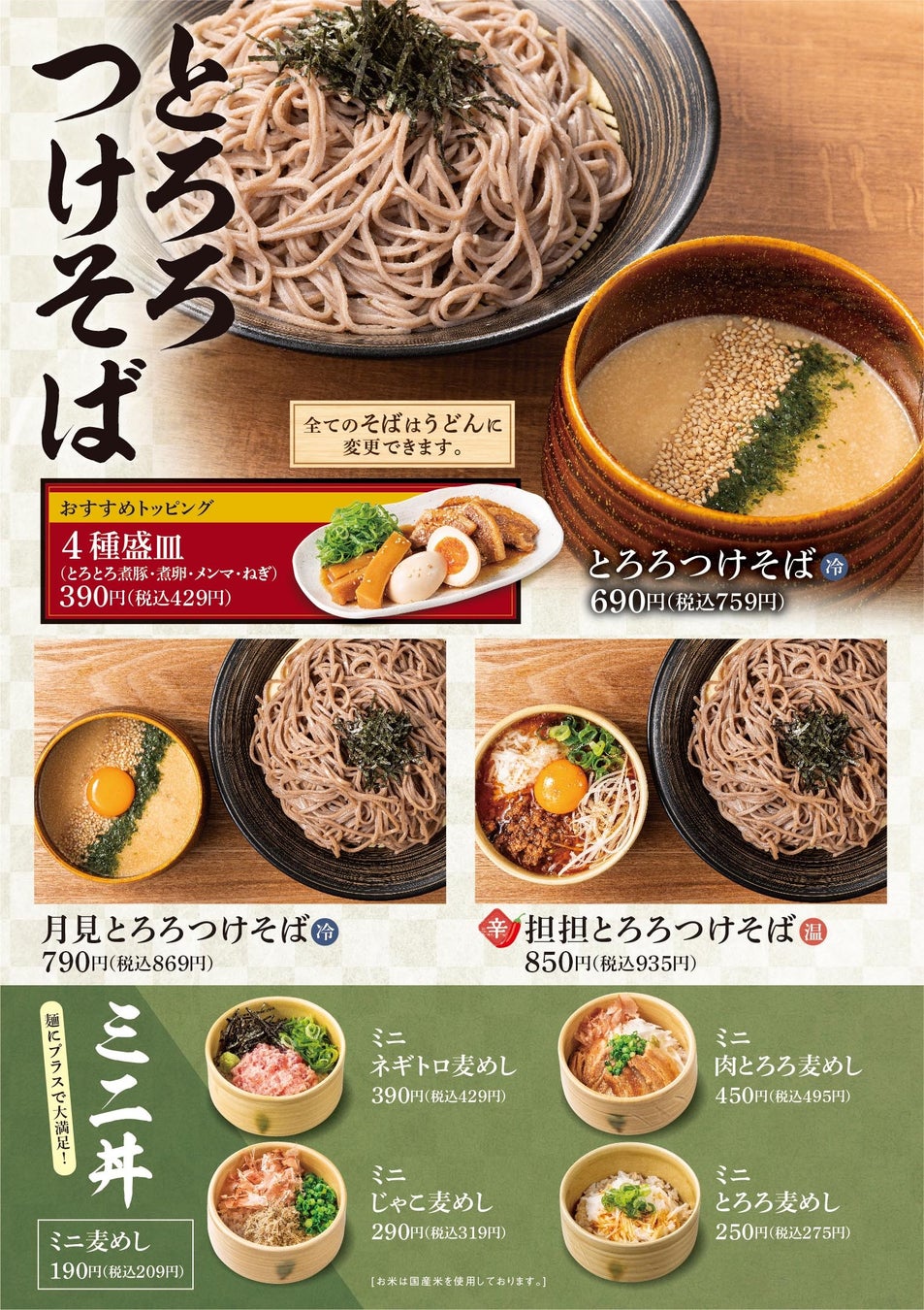 これらをたっぷりとトッピングした「東京とろろそば」の看板商品です。