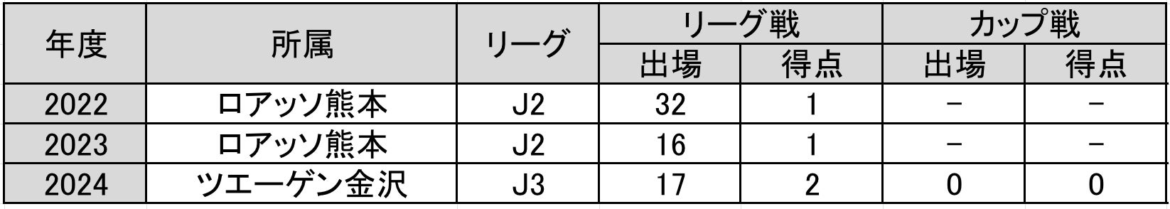 遠石サッカークラブスポーツ少年団 - 周陽中学校 - 高川学園高校 - 駒澤大学 - ロアッソ熊本 - ツエーゲン金沢