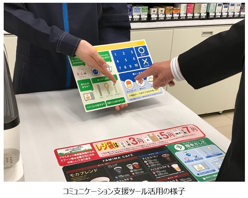 ファミリーマートは、コーポレートメッセージ「あなたと、コンビに、ファミリーマート」のもと、「誰にとっても利用しやすい店舗」を目指して、障がいのある方や高齢の方に、店舗でのお買い物をより快適に楽しんでいただけるような取り組みを推進しております。2023年4月からは、聴覚や言語に障がいのある方や高齢の方がレジでのお買い物の際に、指さしでコミュニケーションを取っていただくことができるコミュニケーション支援ツールを全国の店舗に導入いたしました。7月以降は、多言語(英語・中国語(簡体字)・韓国語)化にも対応しております。