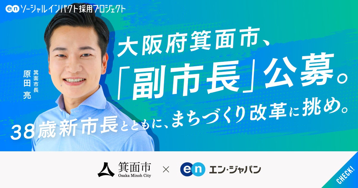エン・ジャパン株式会社(本社:東京都新宿区、代表取締役社長:鈴木孝二)は、2025年1月9日(木)より、大阪府箕面市の『ソーシャルインパクト採用プロジェクト』(https://www.enjapan.com/)を開始しました。当社が運営する採用支援サービスを通じ、箕面市初となる「副市長」の公募を支援します。下記、本プロジェクトの概要と箕面市長・原田氏のコメントを紹介します。