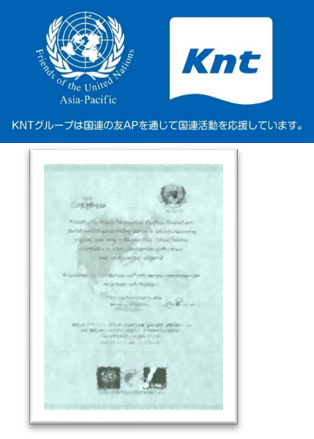 ※4:2009年4月より、KNT-CTグループは国連の友Asia-Pacificを通じて国連活動を応援しています。グループ各社が取り扱う旅行・イベント活動を通じ、「社会貢献」「国際交流」「文化の発展」「環境保全」「平和」をテーマとし、国連の理念に則った活動または学習を行った学校には国連の友 Asia-Pacificより認定書が授与されます。