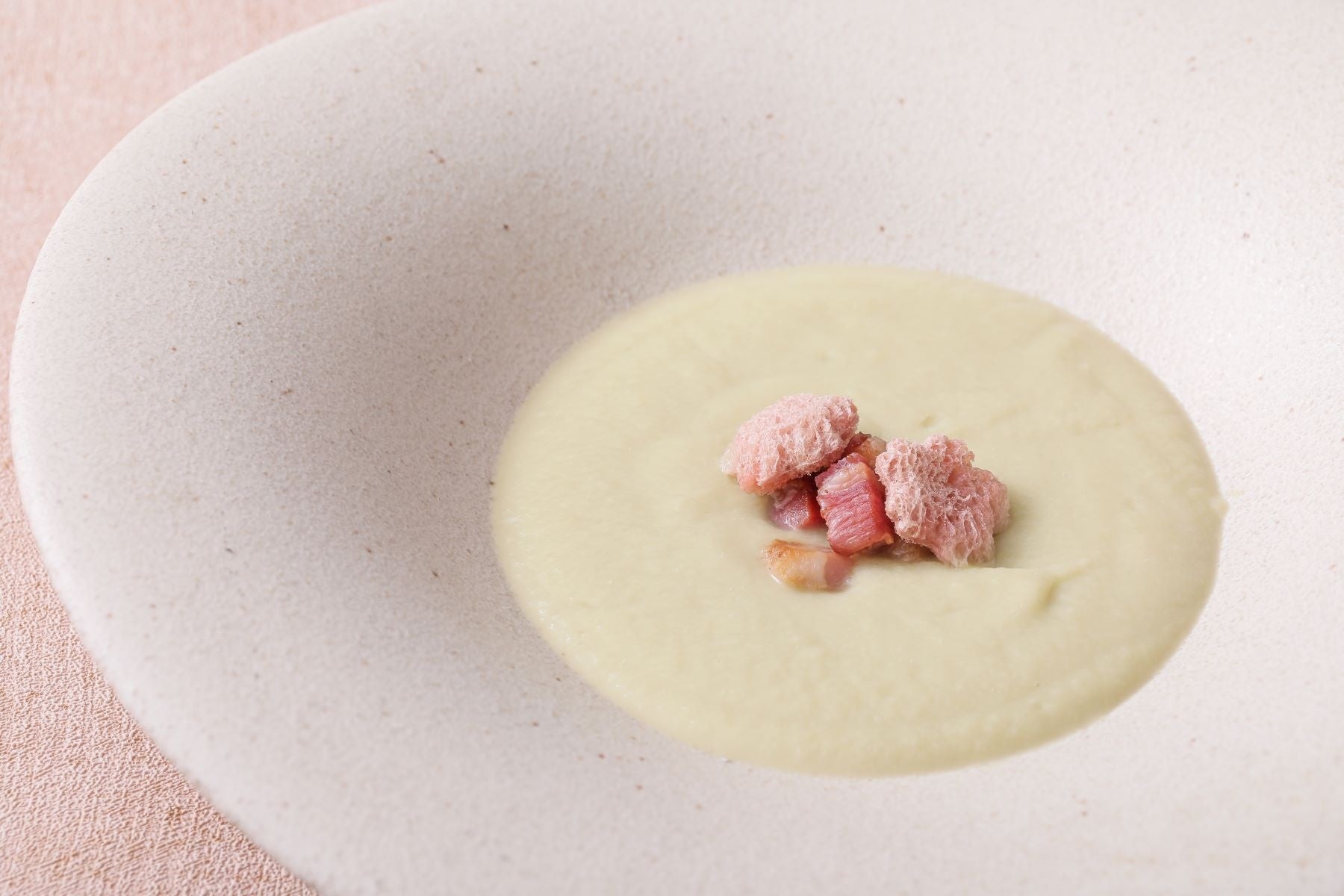 愛知県産春キャベツのヴルーテ パンチェッタを浮かべて