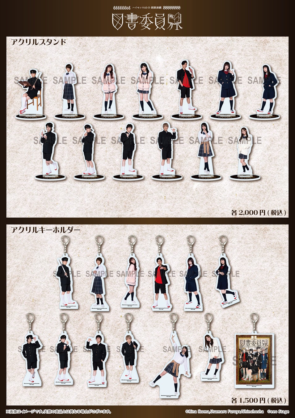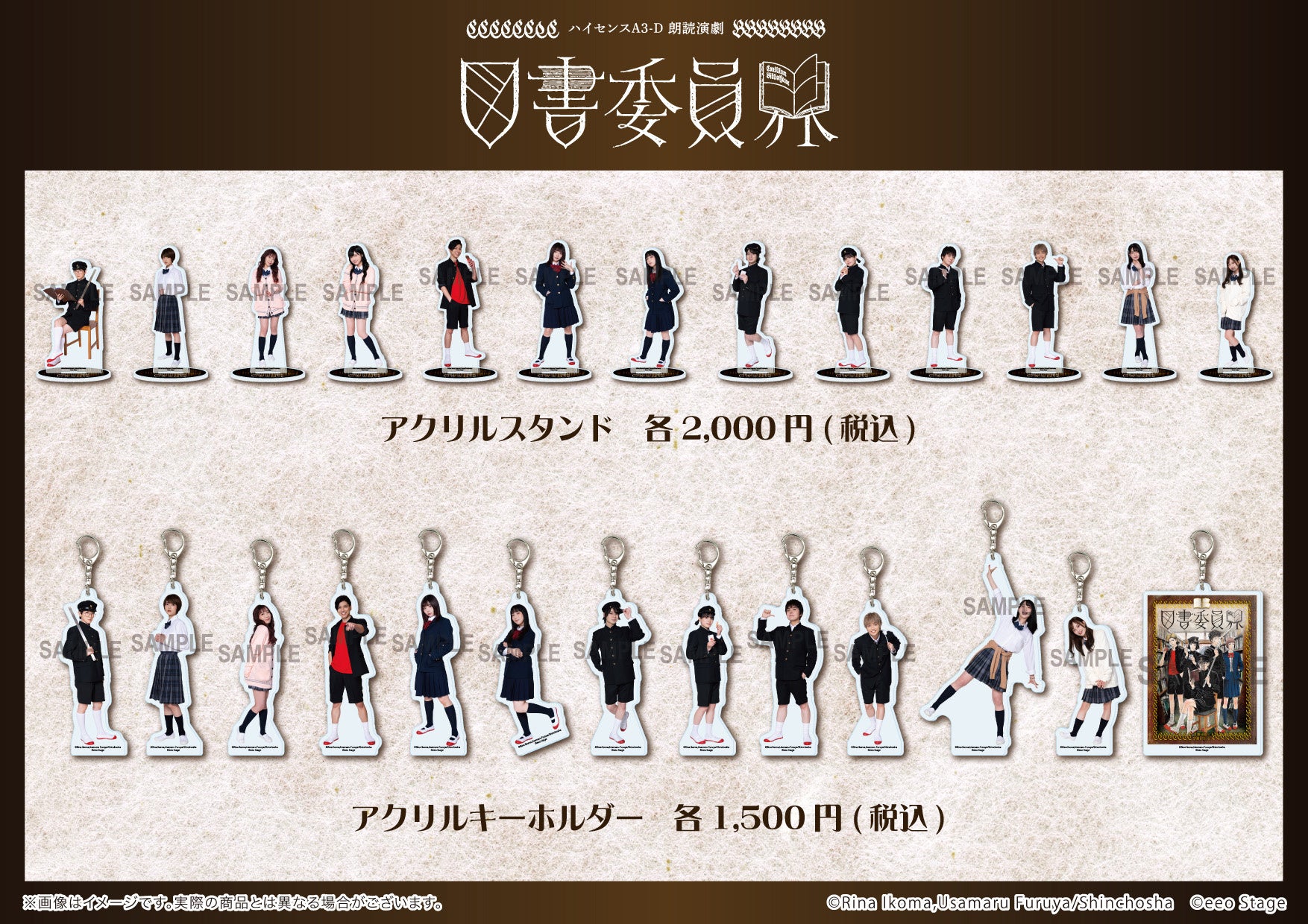キャラクターをイメージした衣装に包んだキャスト陣の撮り下ろし写真を使用したブロマイドやアクリルスタンド、原作の表紙を使用したアクリルキーホルダーなど、5アイテムが発売されます。