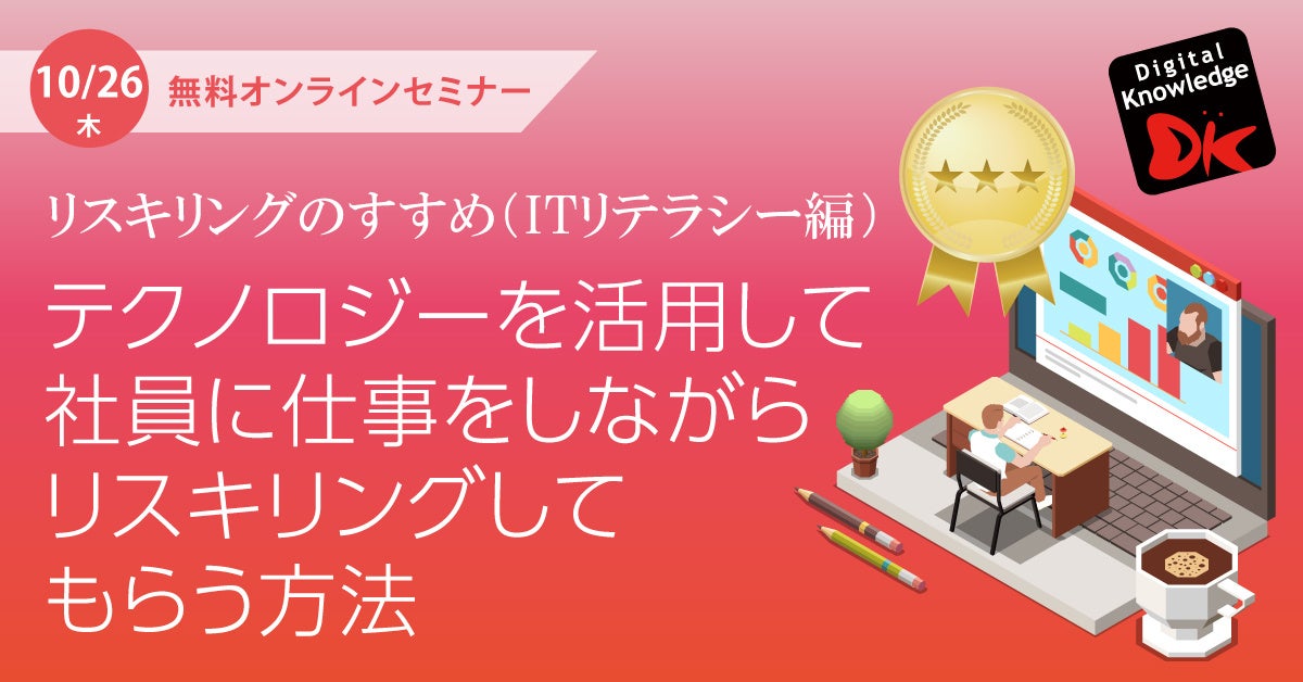 リスキリングのすすめ(ITリテラシー編)~テクノロジーを活用して社員に仕事をしながらリスキリングしてもらう方法~ 《 9/21(木)・ 10/26(木)オンライン開催》