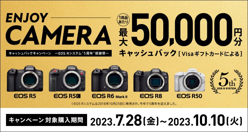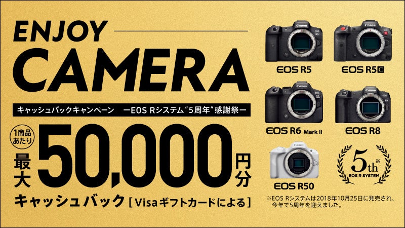 EOS Rシリーズ10商品を対象に最大5万円をキャッシュバックする「ENJOY CAMERA キャッシュバックキャンペーン ―EOS Rシステム“5周年”感謝祭―」を開催
