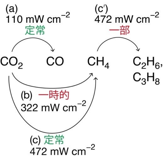 CO2をCO、メタン、エタン、プロパンへ〜光の強さを変えて自在に生成物を生み出す
