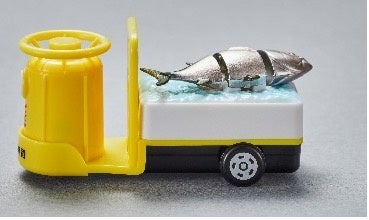 レーの車輪を動かすことで荷台の“まぐろ”がぴちぴちと上下に動き、新鮮な“まぐろ”を