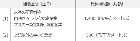 - 別途京都市による賃料補助制度あり。(注1)(1ヶ月当たりの補助金額・上限100平方メートル)