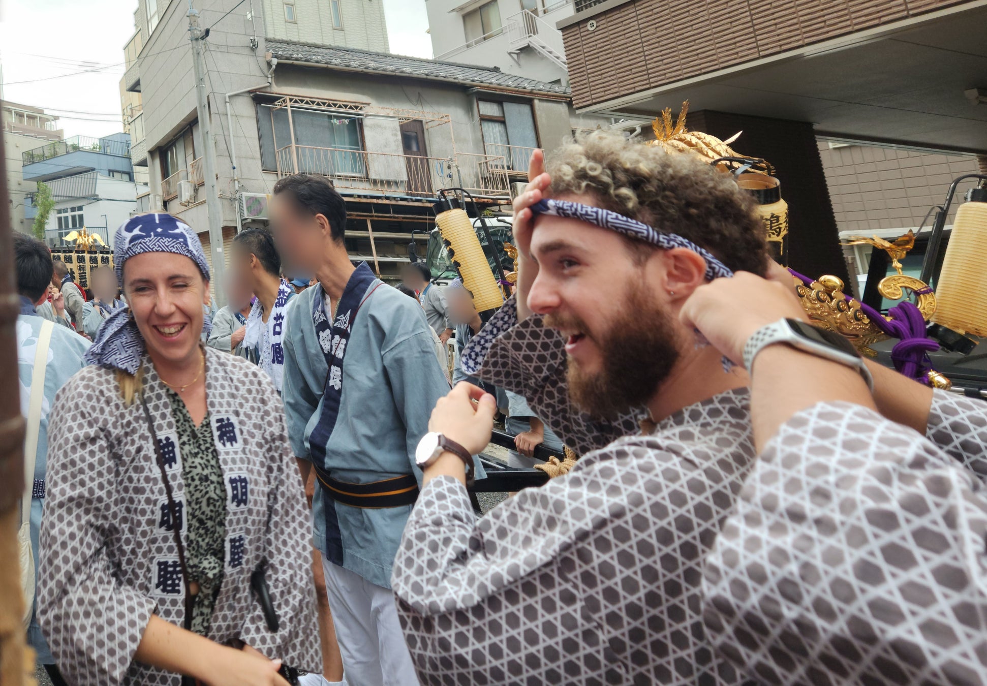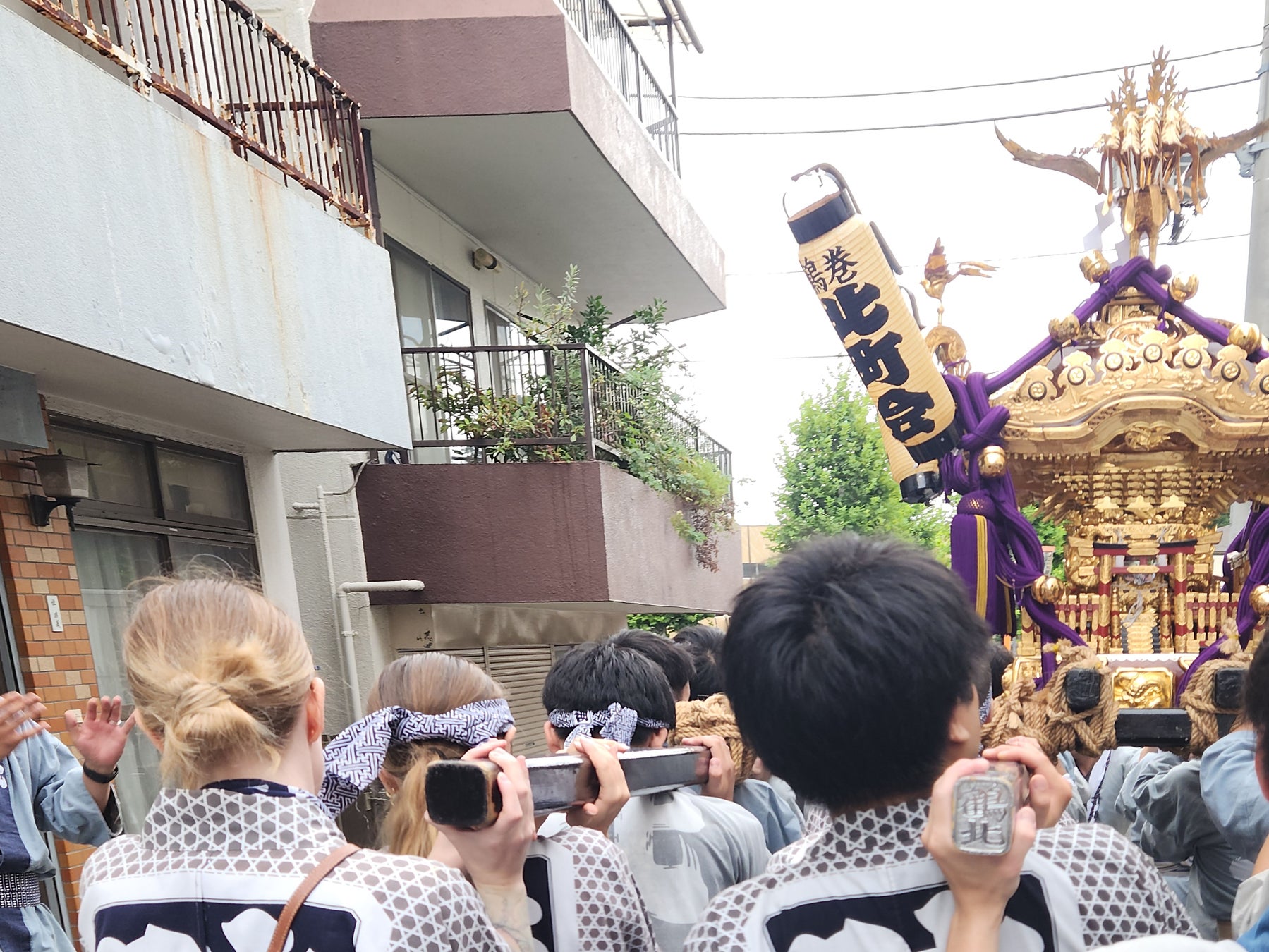 鶴巻町の神輿の担ぎ手に民泊ゲストが参加し、地域のお祭りを一緒に盛り上げます