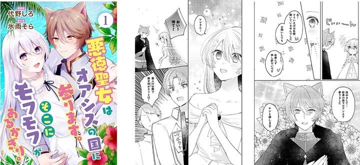 ・作品概要:乙女ゲームの悪役聖女である第三王女・シエラに転生してしまったヒロインは破滅を回避するため、日々奔走していた。ある日砂漠の国・ラビアンからシエラに婚姻の打診がくる。ラビアンからきた使者はなんと獣人。生粋のモフモフ好きのシエラは周りの言葉を聞くことなく即OKしてしまう。こうしてラビアンにたどり着くと、使者だと思っていたレイが実は王太子で――!?そんな聖女シエラと獣人王太子レイのラブコメディ。