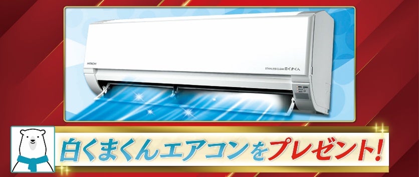 アタック25と同じく今年誕生50年となる日立の「白くまくん」から豪華プレゼント!番組の放送内で「白くまくん」から出される3つのヒントを元に答えを予想し、公式アプリ「つながるジャパネット」からご応募ください!正解した方の中から抽選で1名様に「白くまくんエアコン」をプレゼントいたします!さらに、ハズレてしまってもWチャンス!「BS10PR大使 ポチャッコ ぬいぐるみ3Lサイズ」が抽選で1名様に当たりますので、ぜひご応募ください!