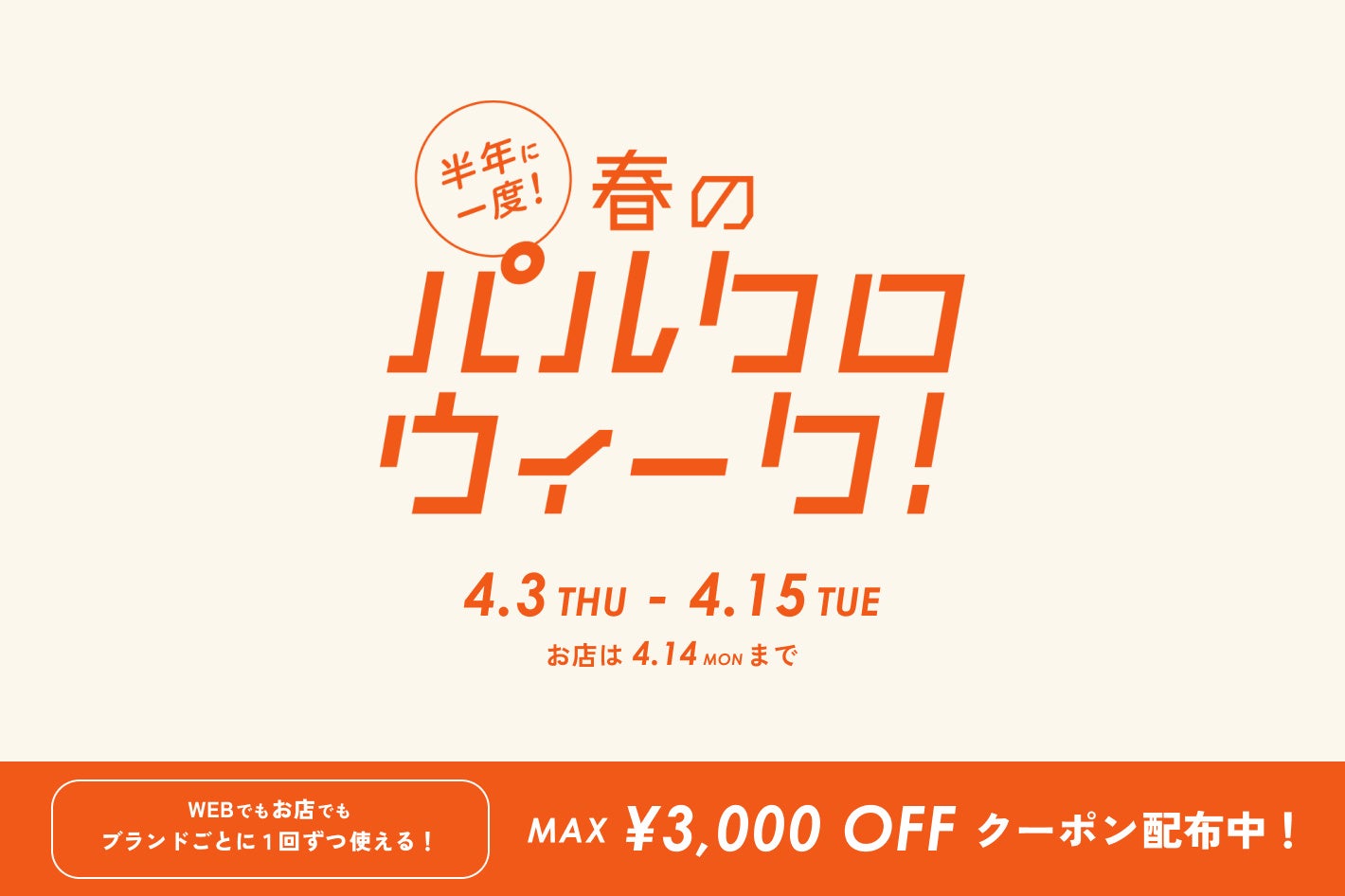 4/3 〜4/15(お店は4/14まで)の期間、パルグループの各店舗&パルクローゼットオンラインストアにて半年に一度のお客様感謝フェアを開催します。