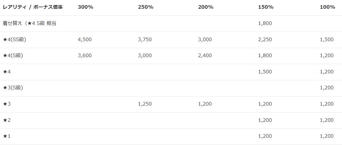 ※ボーナス倍率は、earnLvおよび初期BOX残高に対する補正倍率で、対象のドールを識別するための項目です。ADPがさらに増える訳ではありません。