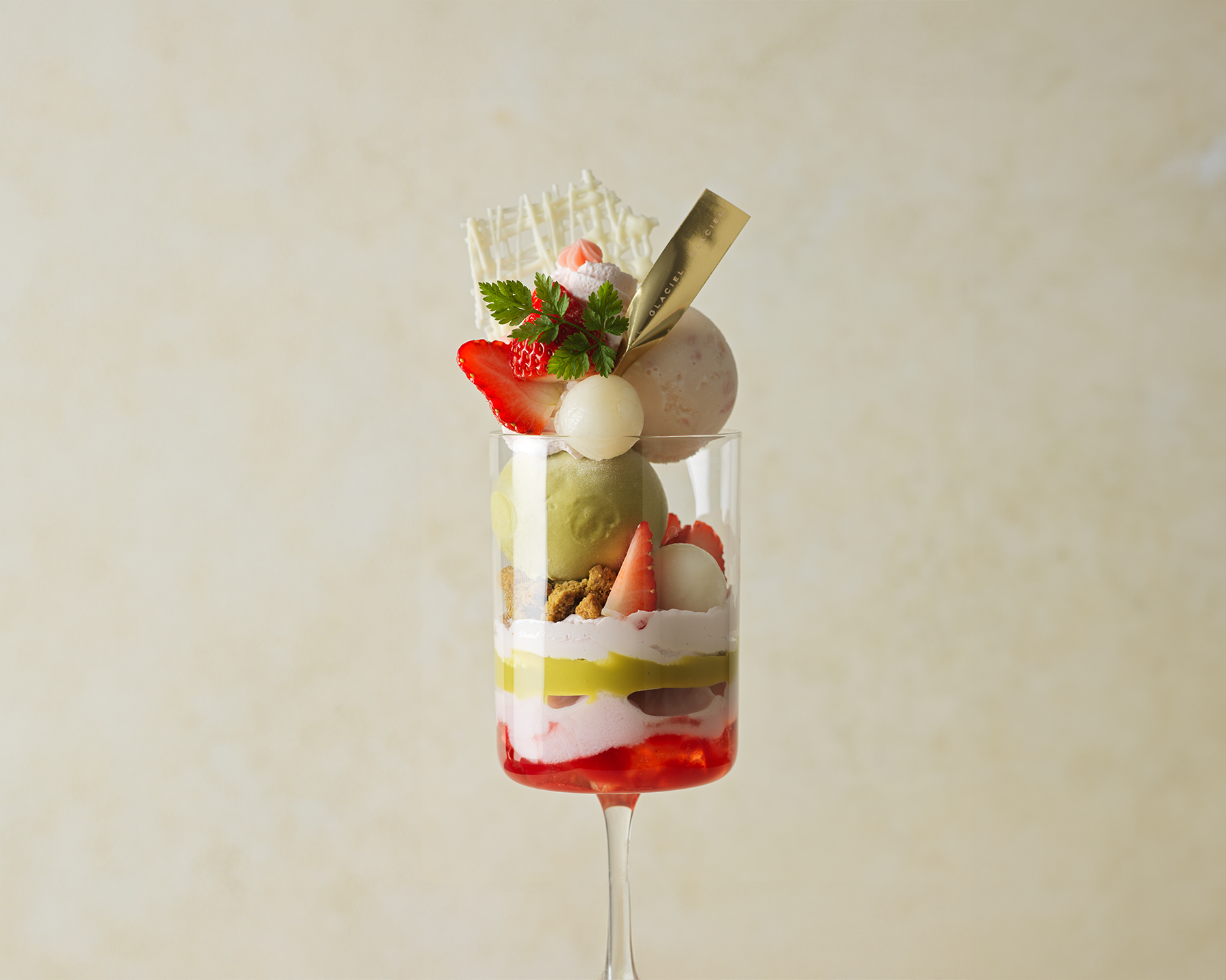 グラッシェル札幌ステラプレイス店、3月1日(土)より苺の甘酸っぱさと優しい甘さが楽しめる春の新作パフェ「シャン ド フレーズ」が期間限定で登場!