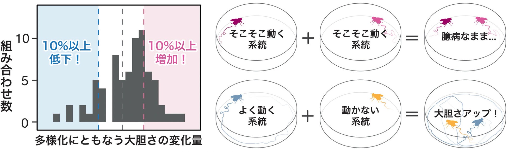 ハエの集団では個性の多様性が「大胆さ」を生む~個体間の活動量の違いが群れ全体で大胆な探索行動を促す〜