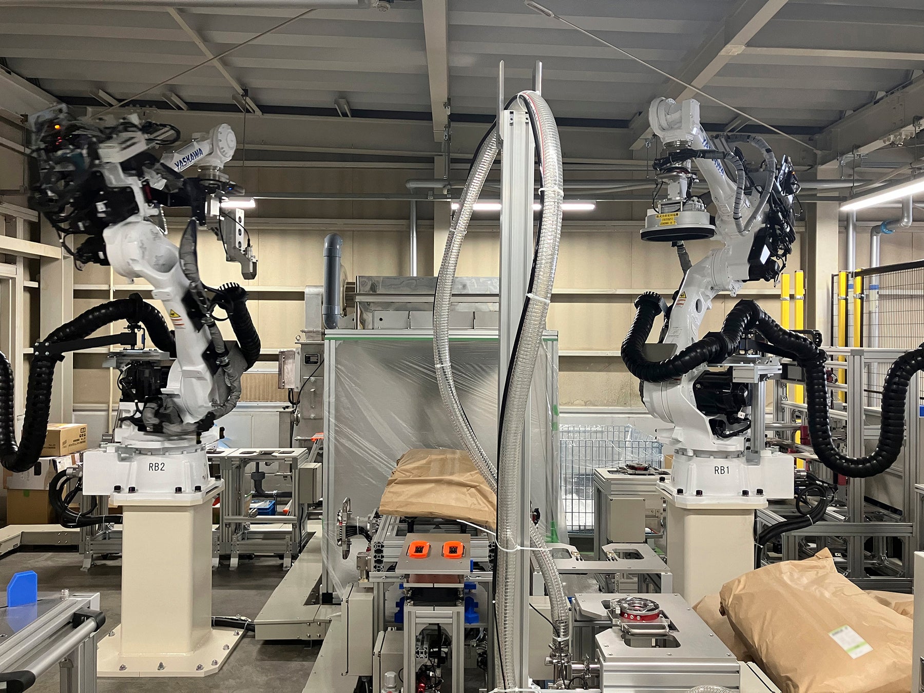 今回、共同で自動化技術の開発に臨んできた(株)安川電機とともに、AIを用いて単一の装置でさまざまな大きさや梱包形態の原料を取り扱う技術の検証を開始します。
