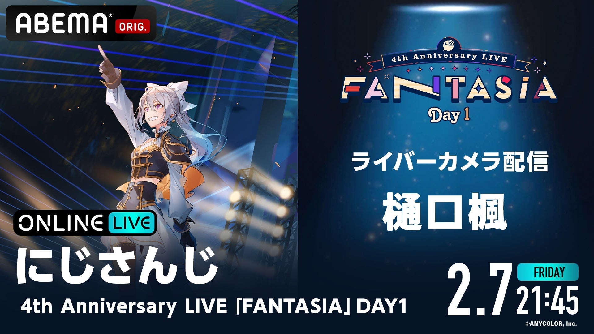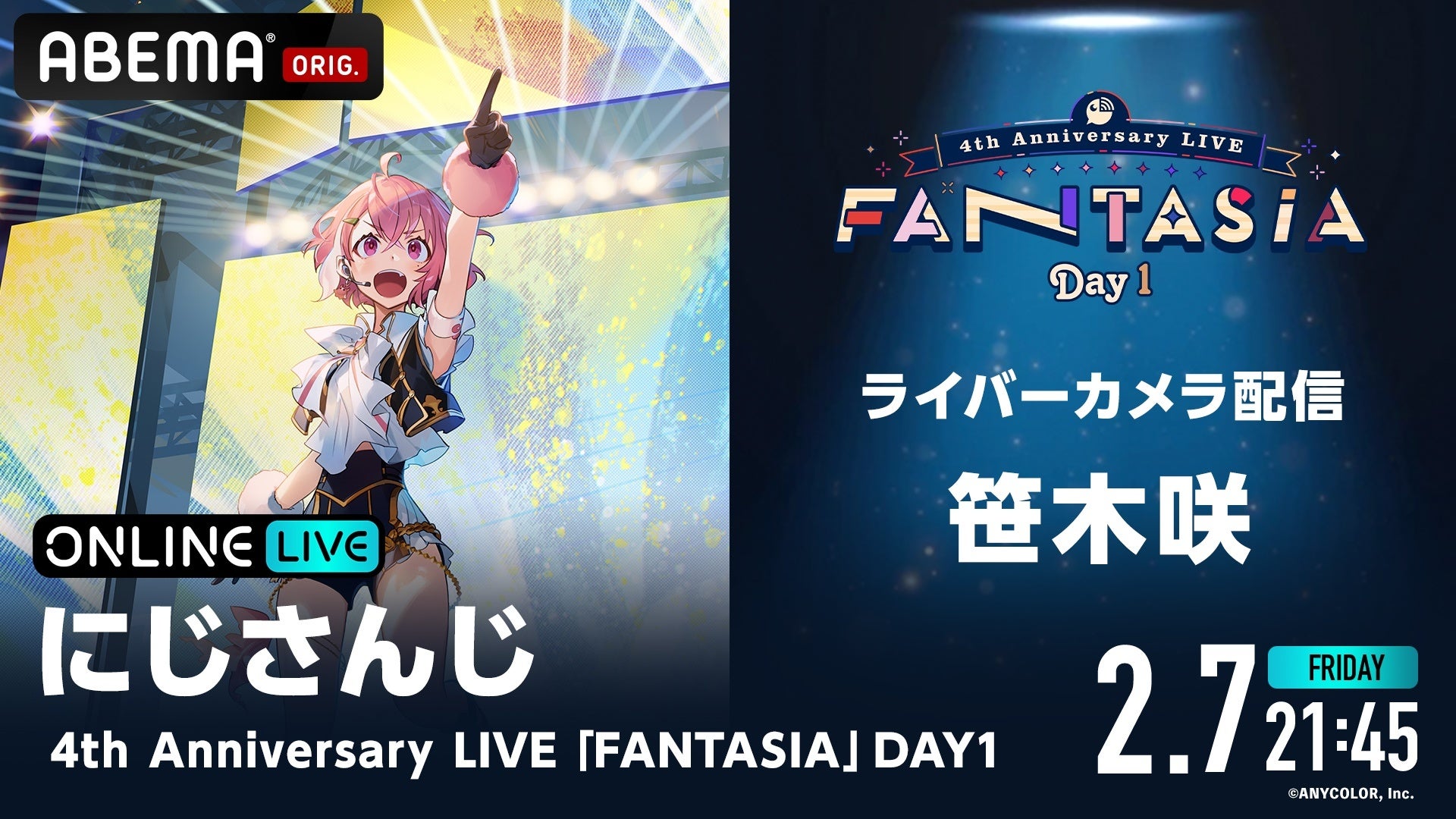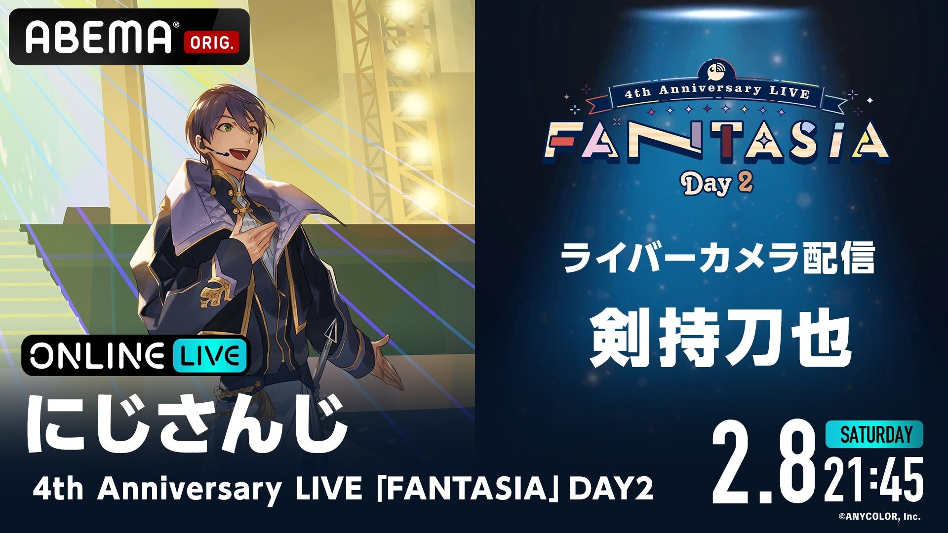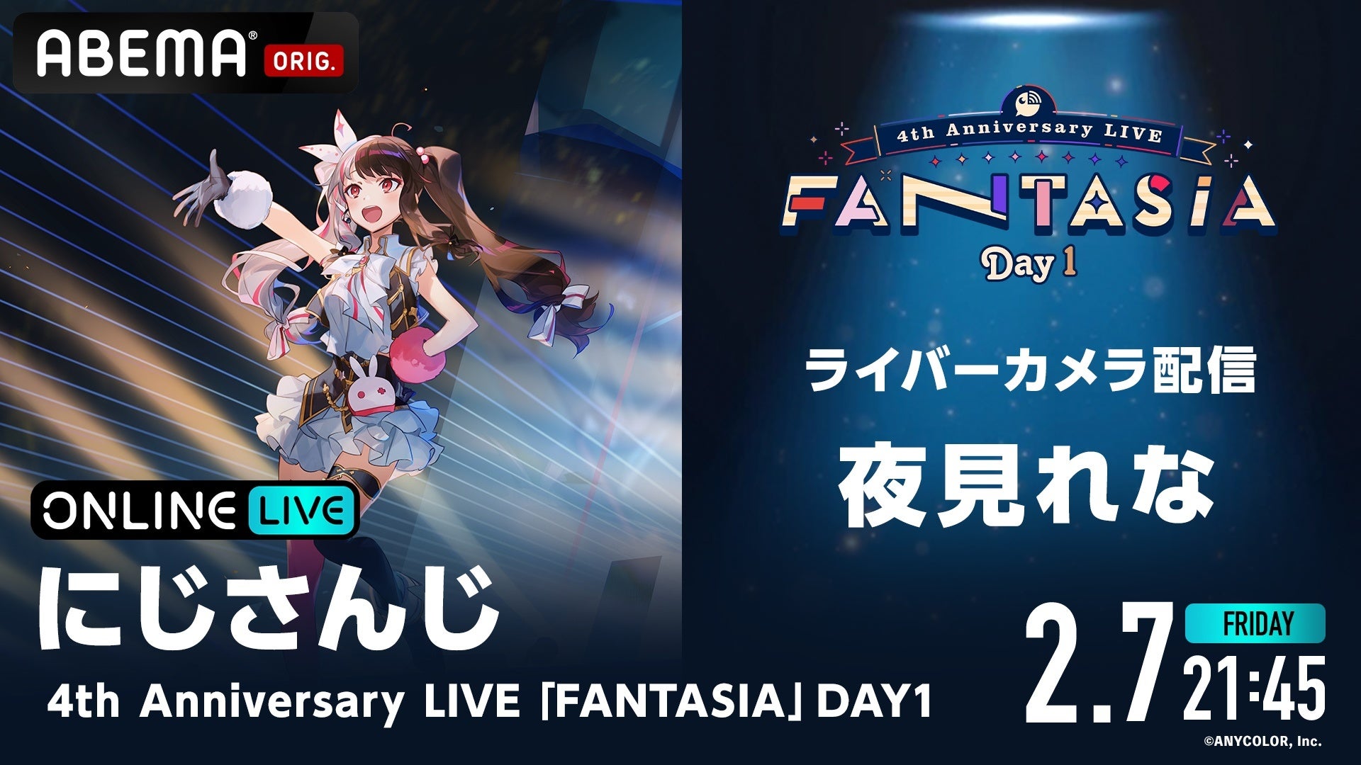新しい未来のテレビ「ABEMA(アベマ)」は、2025年2月7日(金)、2月8日(土)のそれぞれ19時より、大人気VTuber/バーチャルライバーグループ「にじさんじ」が2022年に開催した4周年記念ライブ『にじさんじ 4th Anniversary LIVE 「FANTASIA」』を全編無料放送するほか、「ABEMA PPV(アベマ ペイパービュー)」にて、1人のライバーを追尾できるカメラ映像「ライバーカメラ」を全楽曲放送することを決定いたしました。