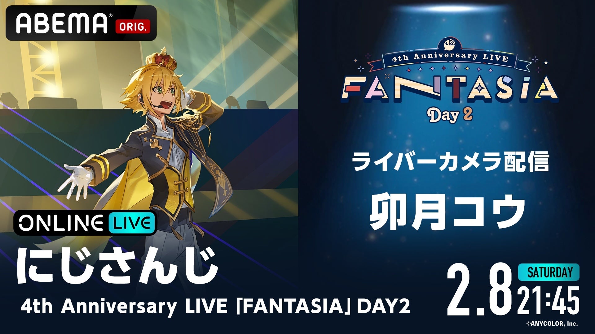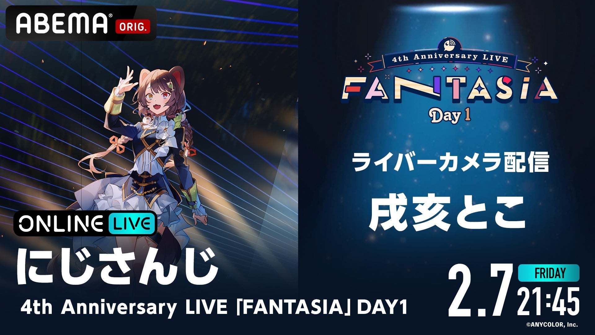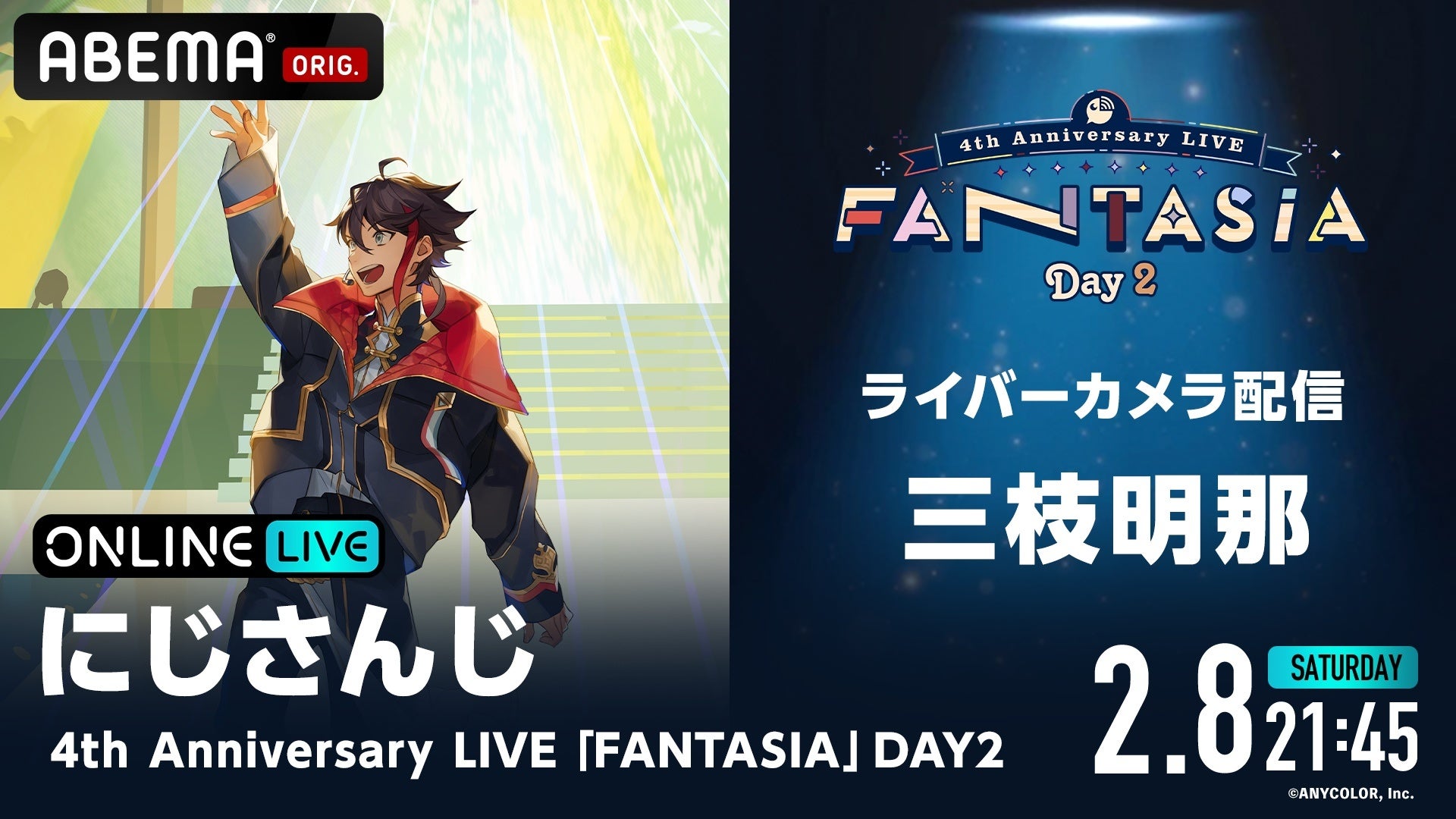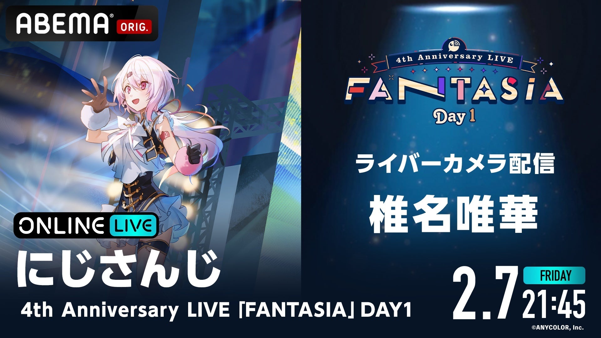 新しい未来のテレビ「ABEMA(アベマ)」は、2025年2月7日(金)、2月8日(土)のそれぞれ19時より、大人気VTuber/バーチャルライバーグループ「にじさんじ」が2022年に開催した4周年記念ライブ『にじさんじ 4th Anniversary LIVE 「FANTASIA」』を全編無料放送するほか、「ABEMA PPV(アベマ ペイパービュー)」にて、1人のライバーを追尾できるカメラ映像「ライバーカメラ」を全楽曲放送することを決定いたしました。