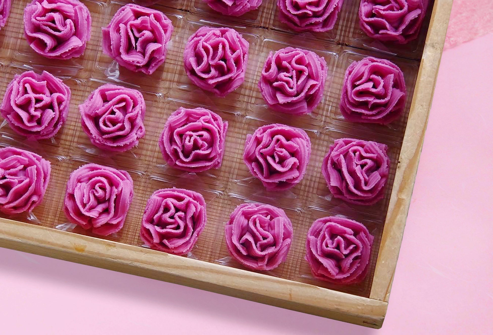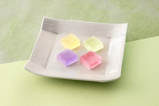 スイートピー、すみれ、金木犀、エルダーフラワーの風味をとじこめたお菓子です。