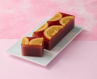 ラズベリーといちごの羊羹に、スライスしたオレンジを添えました。