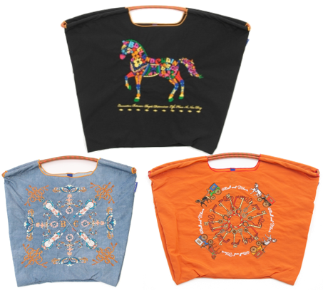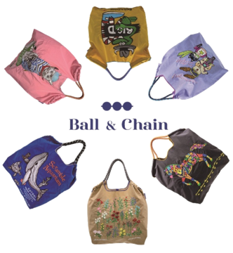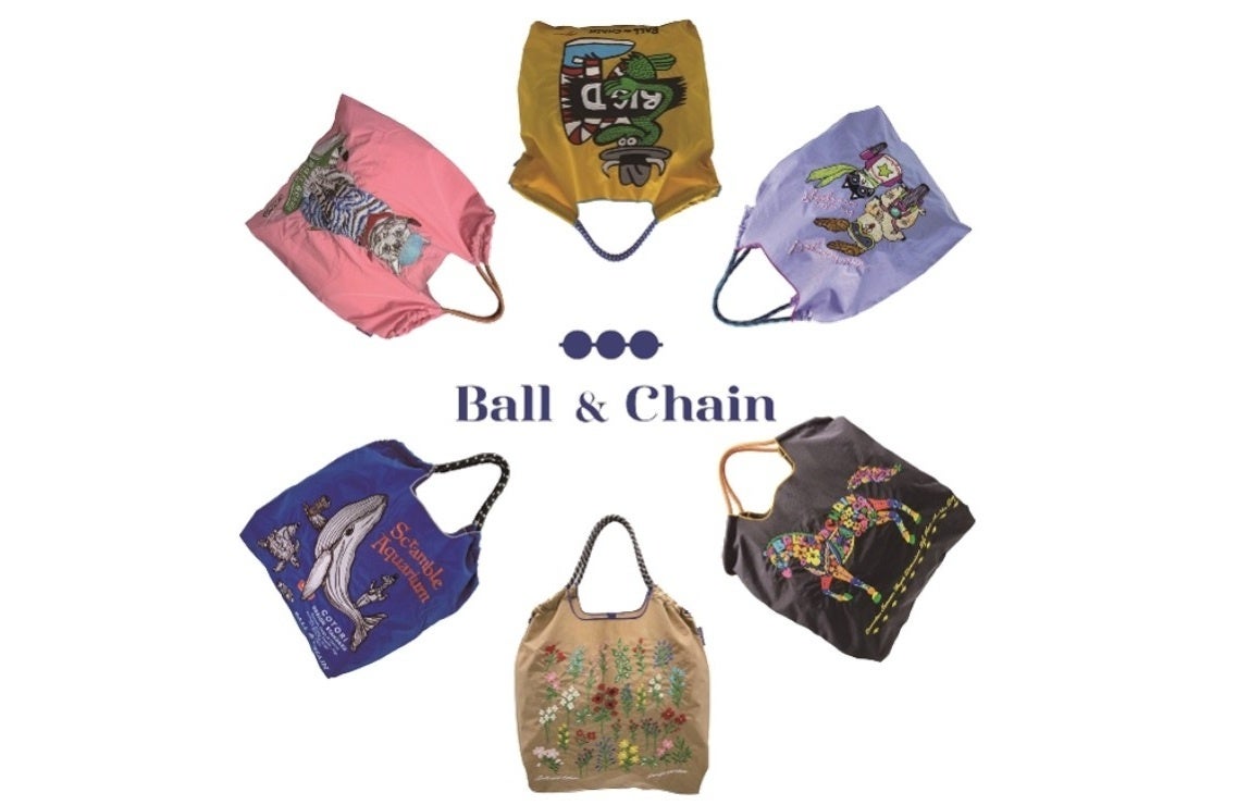 厚みのあるナイロン生地に刺繍でデザインを施した「Ball & Chain」のショッピングバッグは耐久性が高く、折りたたむとコンパクトになるので持ち運びにも便利です。