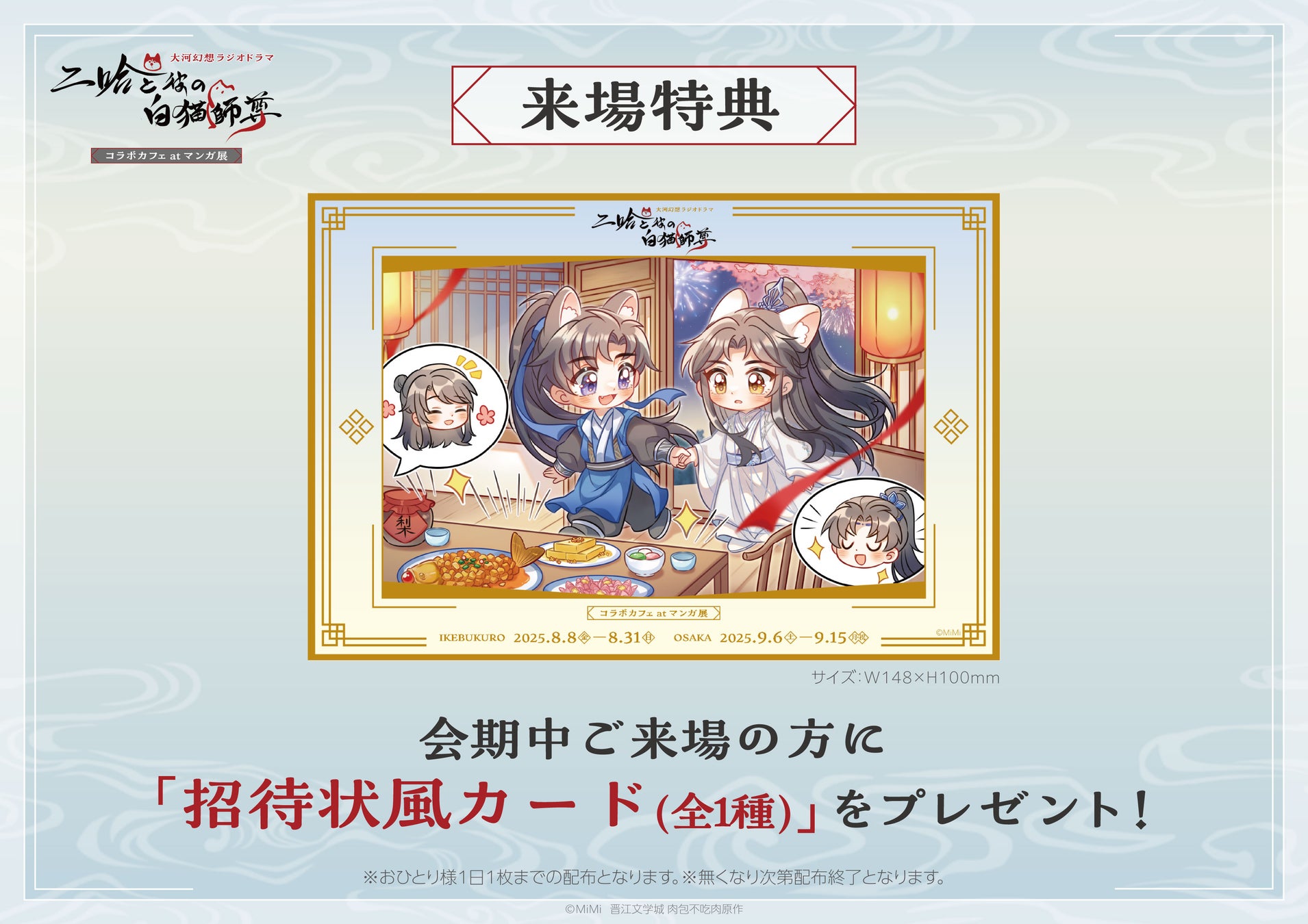 日本語版ラジオドラマ「二哈と彼の白猫師尊」コラボカフェ at マンガ展 が本日より開催!池袋から大阪への巡回も!