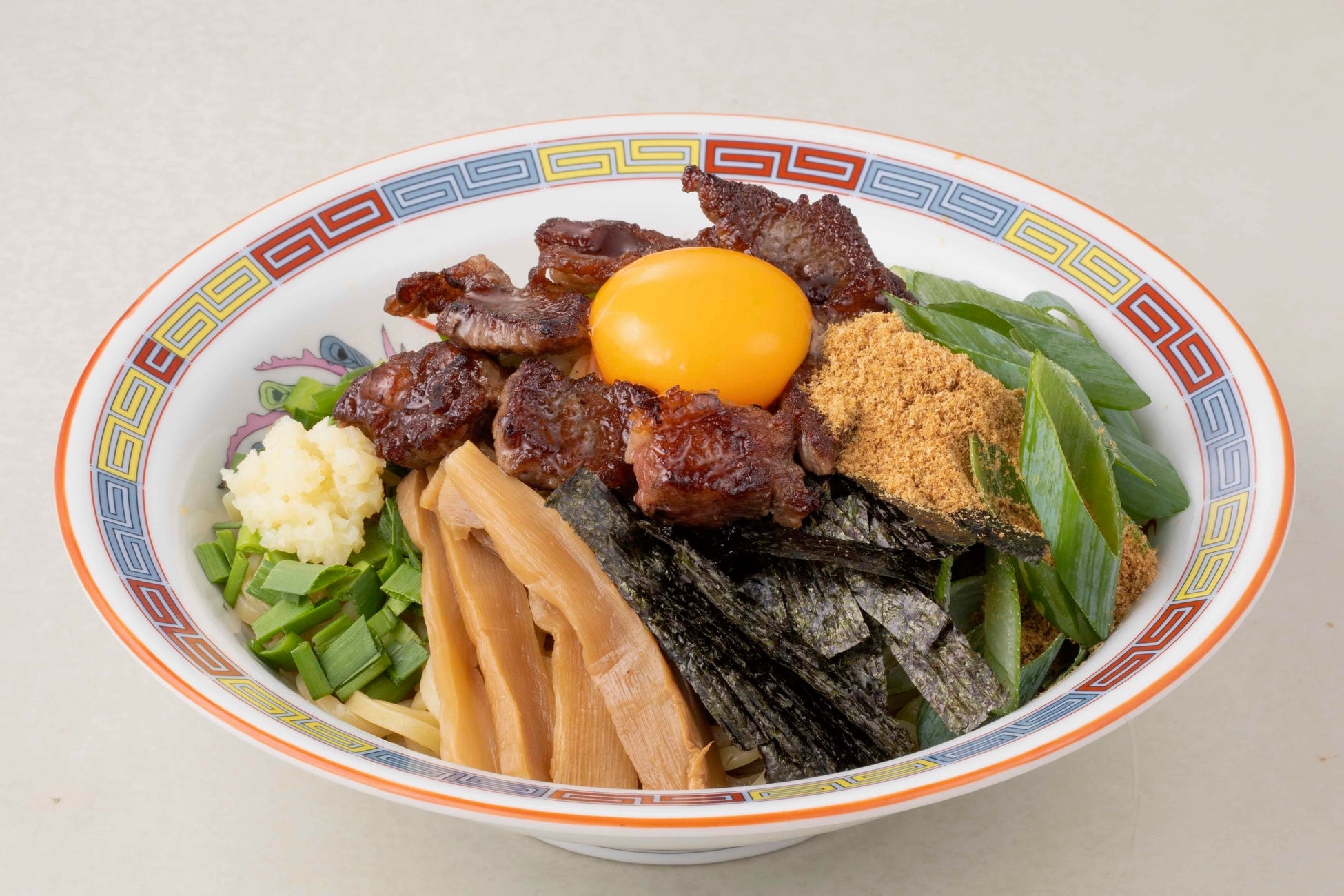 大阪の黒毛和牛や瀬戸内・明石海苔など、関西のご当地食材を贅沢に使用したまぜそば。