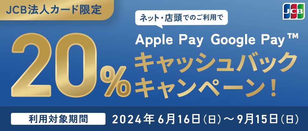 JCB法人カードでのApple Pay・Google Pay利用開始を記念して、キャッシュバックキャンペーンを実施いたします。