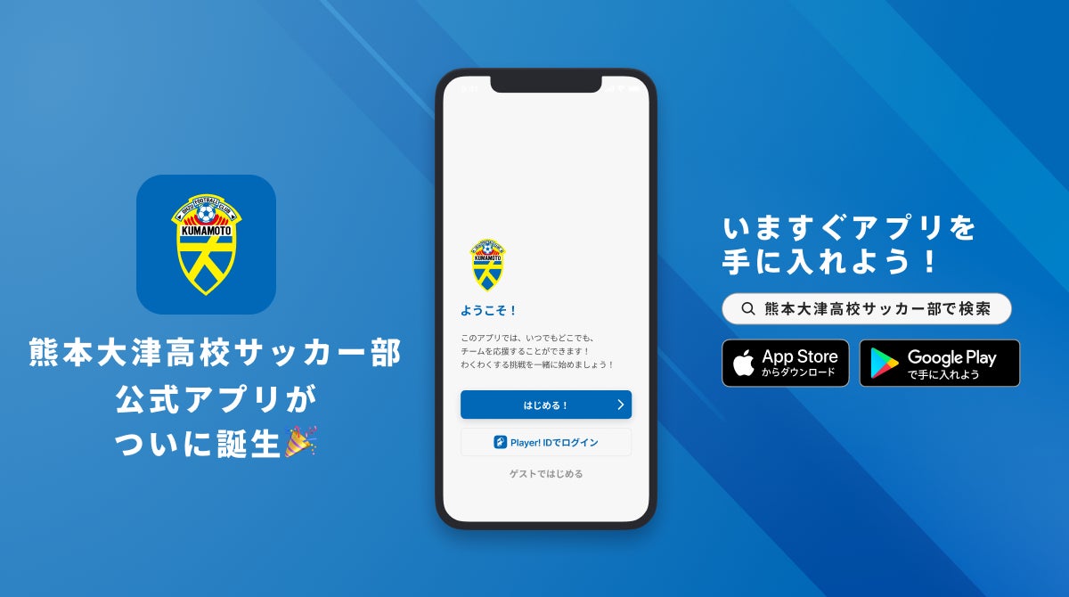 AppStoreもしくはGooglePlayで「熊本県立大津高等学校サッカー部」と検索!