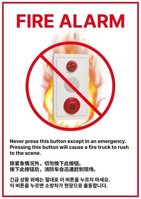 民泊を運営していると、海外ゲストの方が、自動火災報知機のボタンを誤って押してしまい、消防車が現地に出動する事例も発生することがあります。
