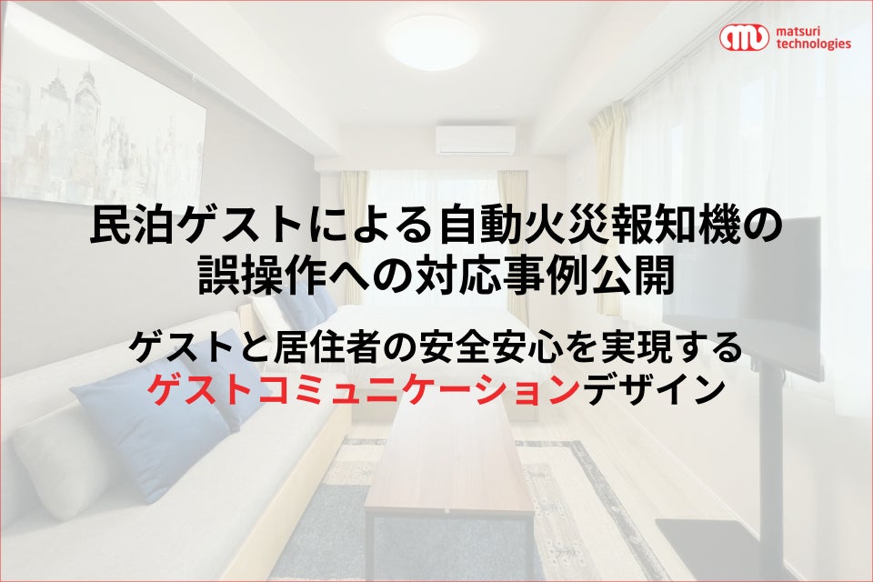 ソフトウェアを主軸に、空間の価値を最大化するソリューション「StayX」を運営するmatsuri technologies株式会社(本社:東京都新宿区)は、民泊事業者が取り組むべきゲストとのコミュニケーションデザインの一貫として、自動火災報知機の誤操作への対処例をお知らせします。