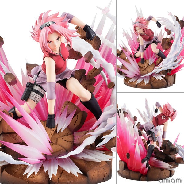 - 修業により身に着けたチャクラコントロールと怪力から放つ「桜花衝」をイメージし再現しました。渾身の一撃から繰り出される衝撃をダイナミックかつ繊細に造形。