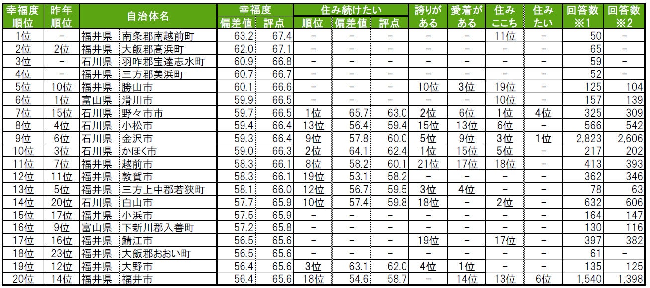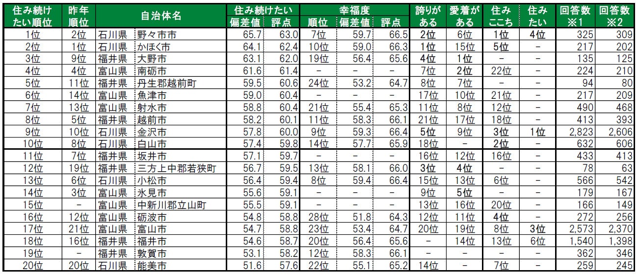 いい部屋ネット「街の幸福度 & 住み続けたい街ランキング2023<北陸版>」(街の住みここちランキング特別集計)発表