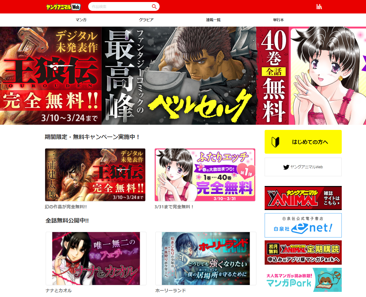 ヤングアニマル作品が基本全話無料! ここでしか読めないマンガも! 誌面掲載のグラビアも無料で見放題!