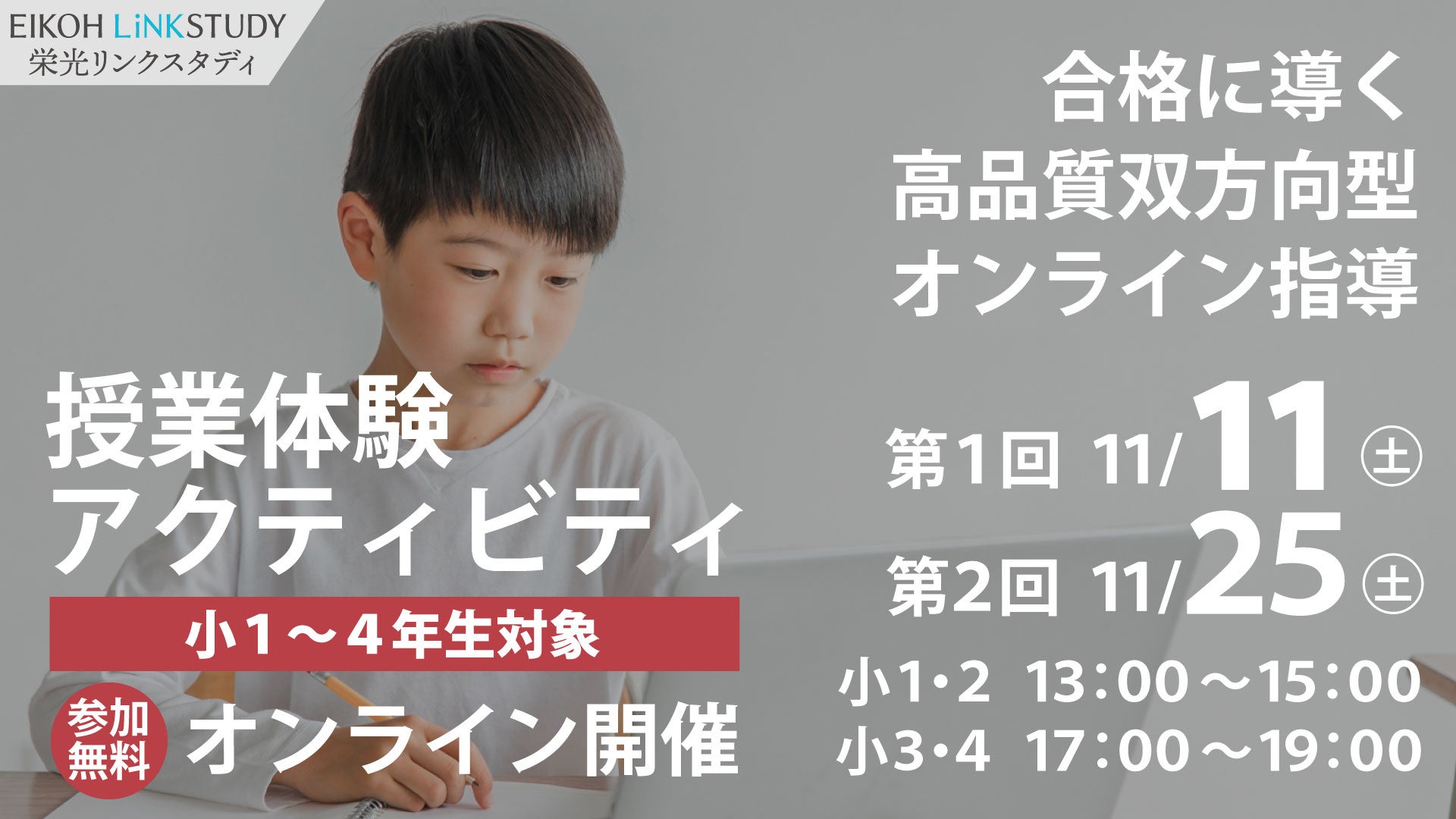 【栄光リンクスタディ】小1~4年生対象、オンライン塾を体験できる「授業体験アクティビティ」を11月に無料開催