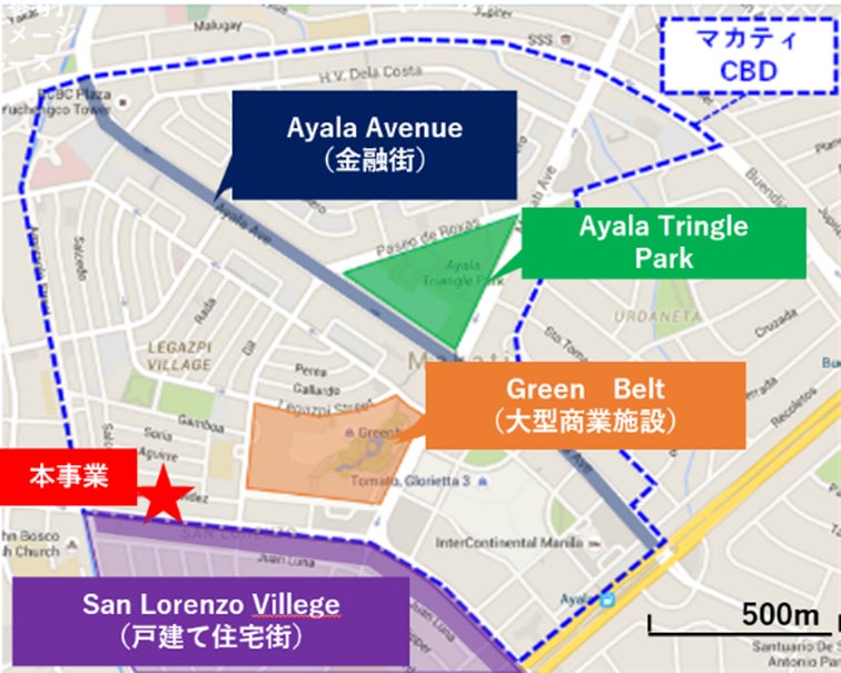 本事業はマニラ首都圏の中心部に位置し、フィリピン国内最大のビジネス中心街である「マカティCentral Business District (以下、「マカティCBD」)」(マニラ首都圏マカティ市)内に所在します。マカティCBD内の住宅供給量は極めて限られており、高い立地希少性を持つ事業です。