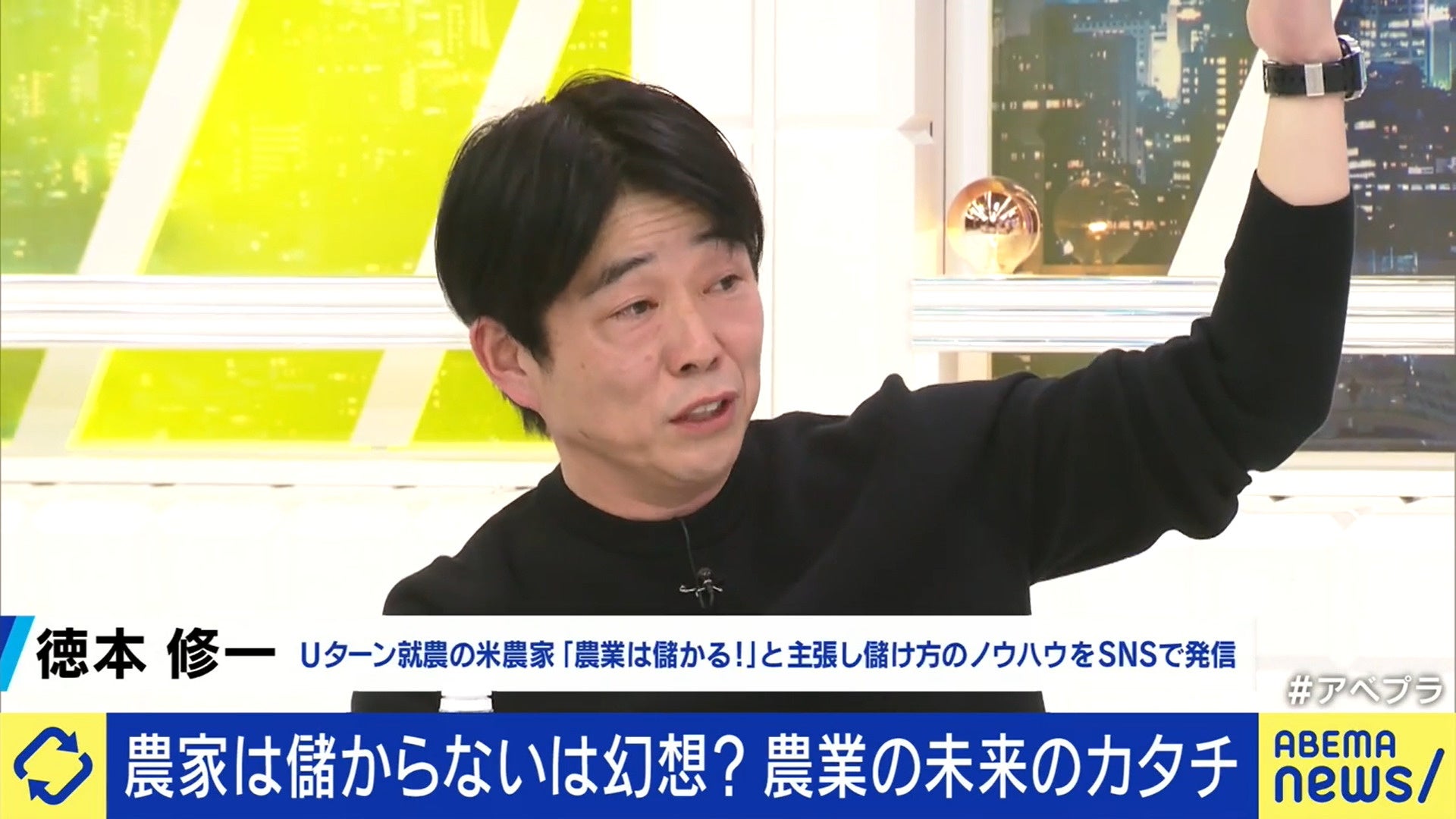 番組には、米農家の徳本修一さんが出演し、「農業は儲かる!」と主張。地元・鳥取県でUターン就農をした徳本さんは「最初は消防士をやっていて、そのあとデヴィ夫人のマネージャーをしてました。それから音楽活動をしたり、IT企業で役員をしたり…」と異色の経歴を披露して、出演者たちを驚かせた上で、「いきなり農業法人を立ち上げて、最初は有機農業をやっていたが、毎年1~2千万円の赤字が続いていた。投資家に激詰めされながら頭を下げて、どうにか資金調達をしていた」と告白。